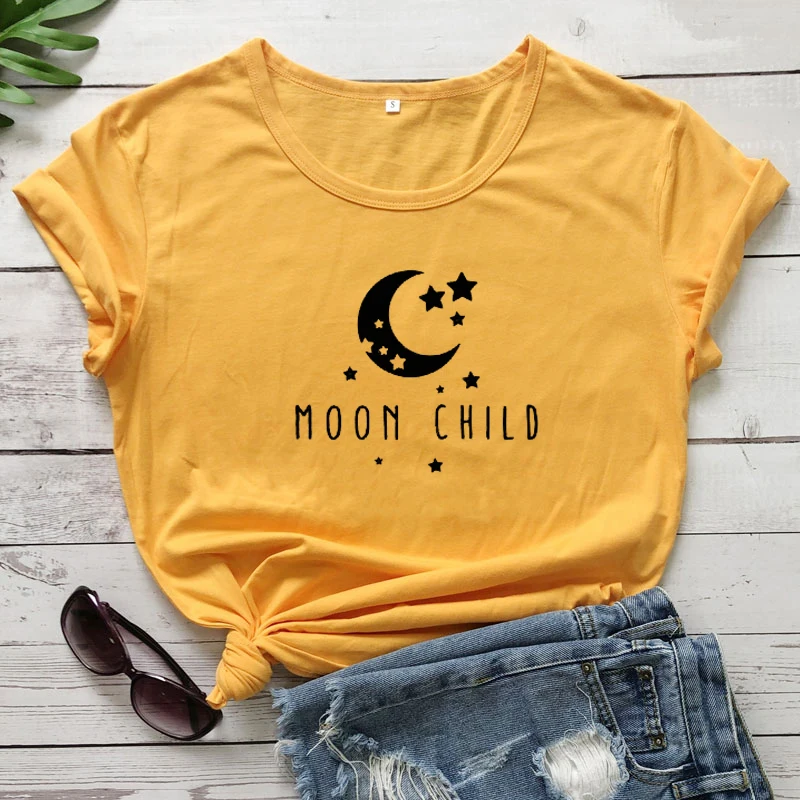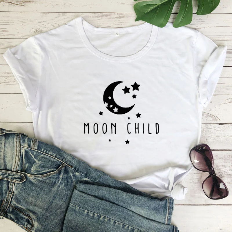 Детская футболка Moon из 100% хлопка, в стиле ретро, Женская Повседневная летняя футболка с коротким рукавом, с рисунком в стиле хиппи, футболка, наряды