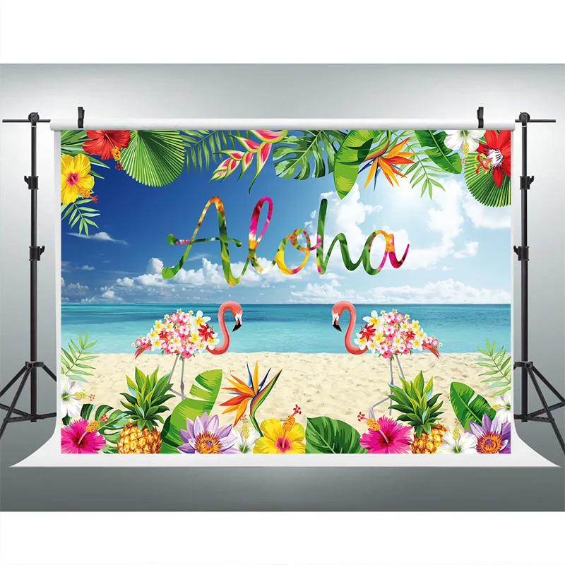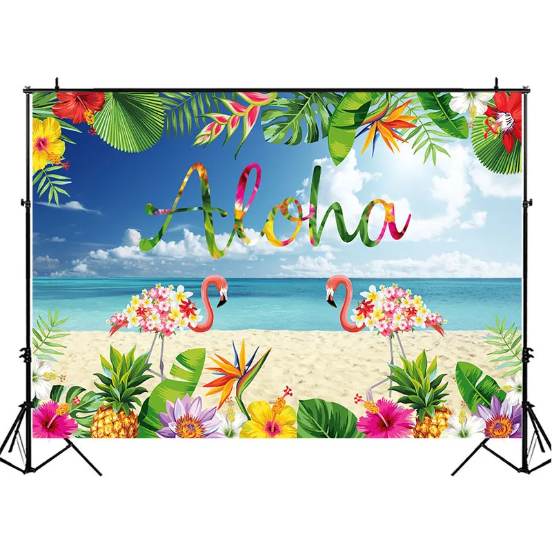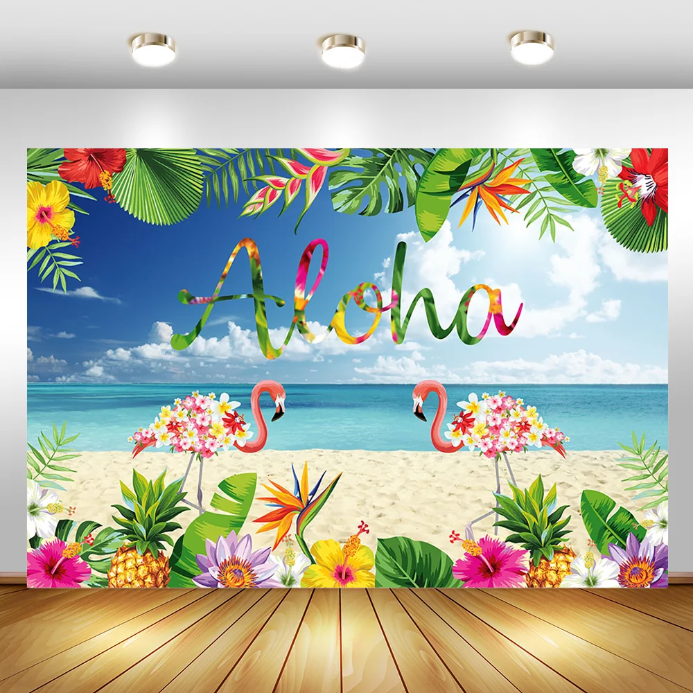Летний Пляжный тематический фон на день рождения тропические зеленые листья цветы Фламинго вечерние фоны для фотосъемки декорации принадлежности