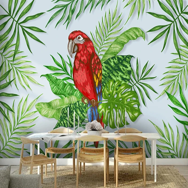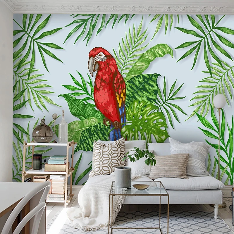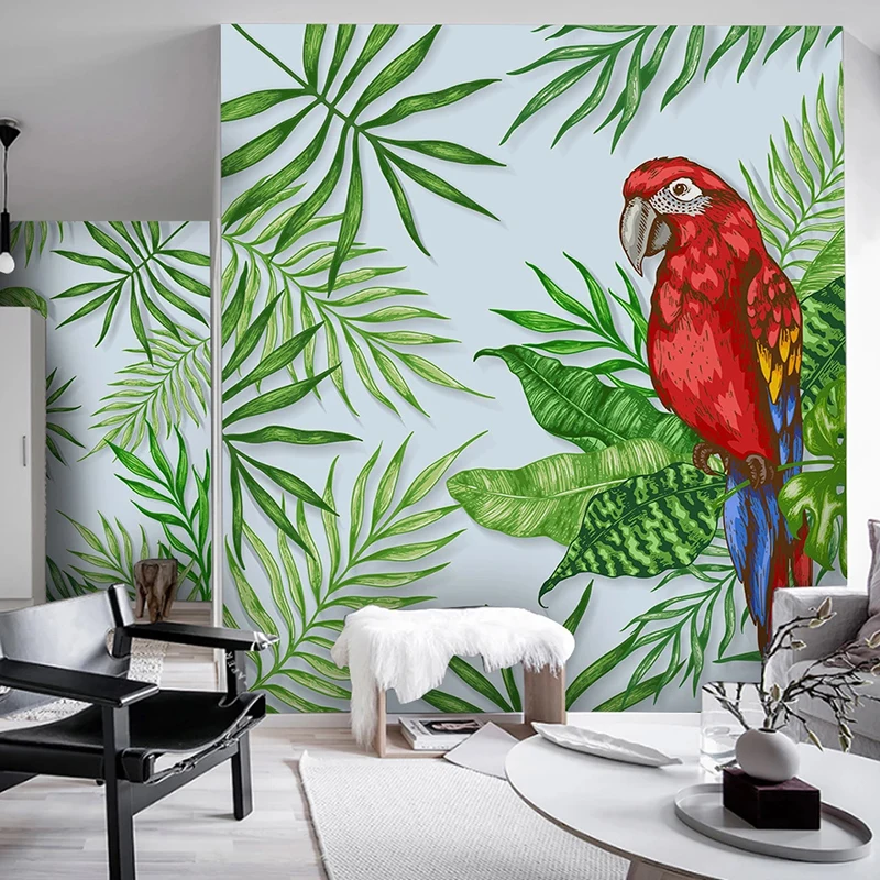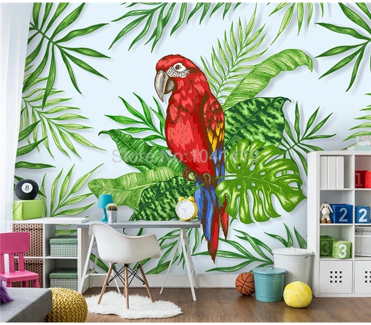 Пользовательские Настенные обои 3D Ручная роспись тропические растения листья птица Детская комната фон настенная живопись Papel De Parede Sala
