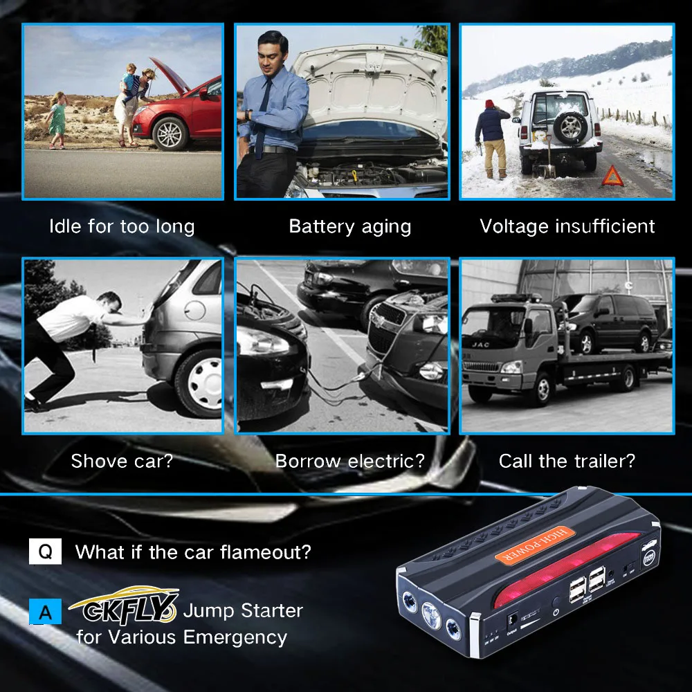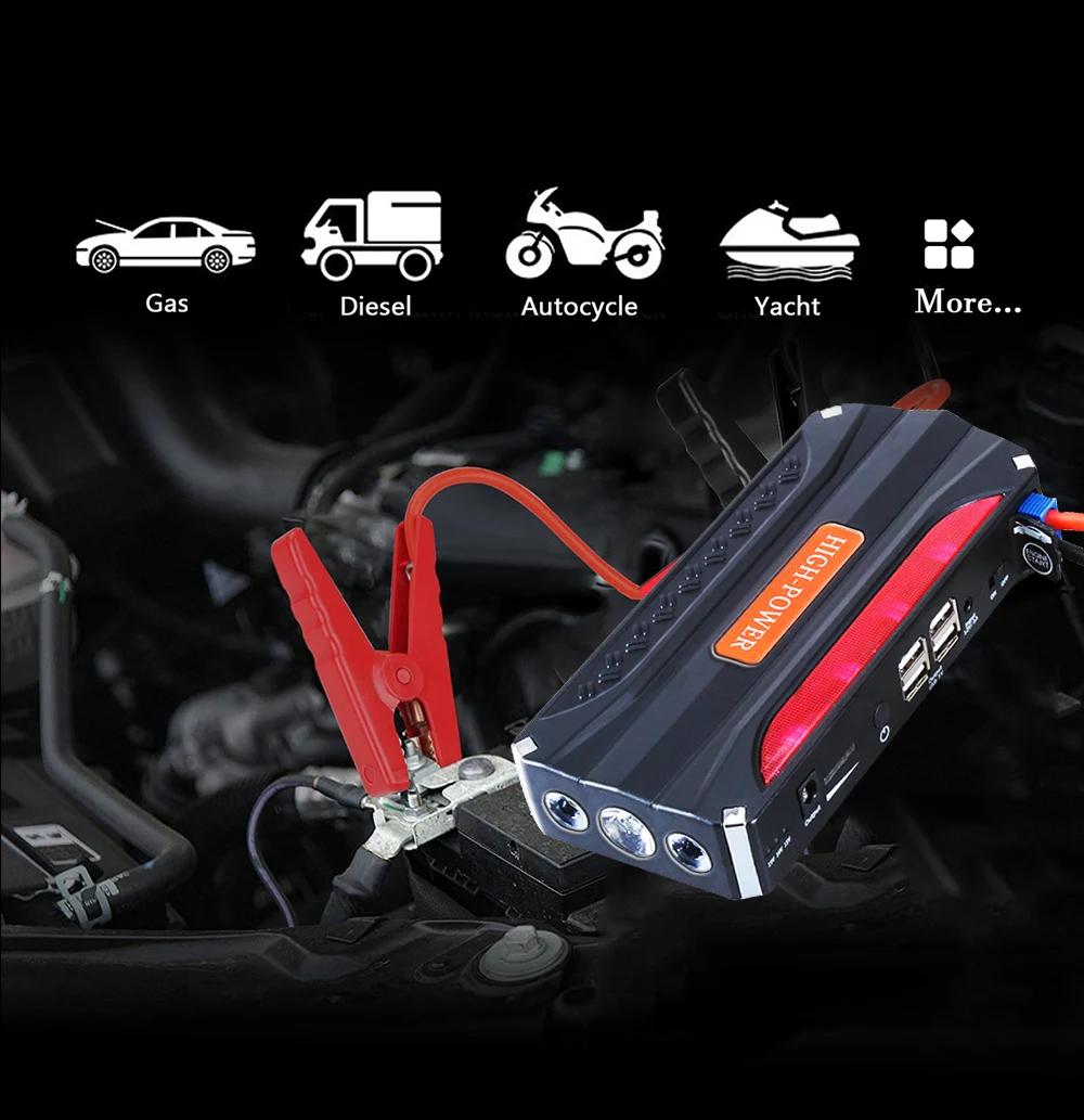 Аварийное пуско-зарядное устройство для автомобиля быстрое Запуск 12В бензиновый автомобиль (до 3,5л) и дизельный автомобиль (до 2,5л) всего за считанные секунды, когда аккумулятор автомобиля сработает. Когда вы путешествуете в каком-то незаполненном месте, и ваш автомобильный аккумулятор разряжен, вы можете использовать этот автомобильный стартер для запуска вашего автомобиля.