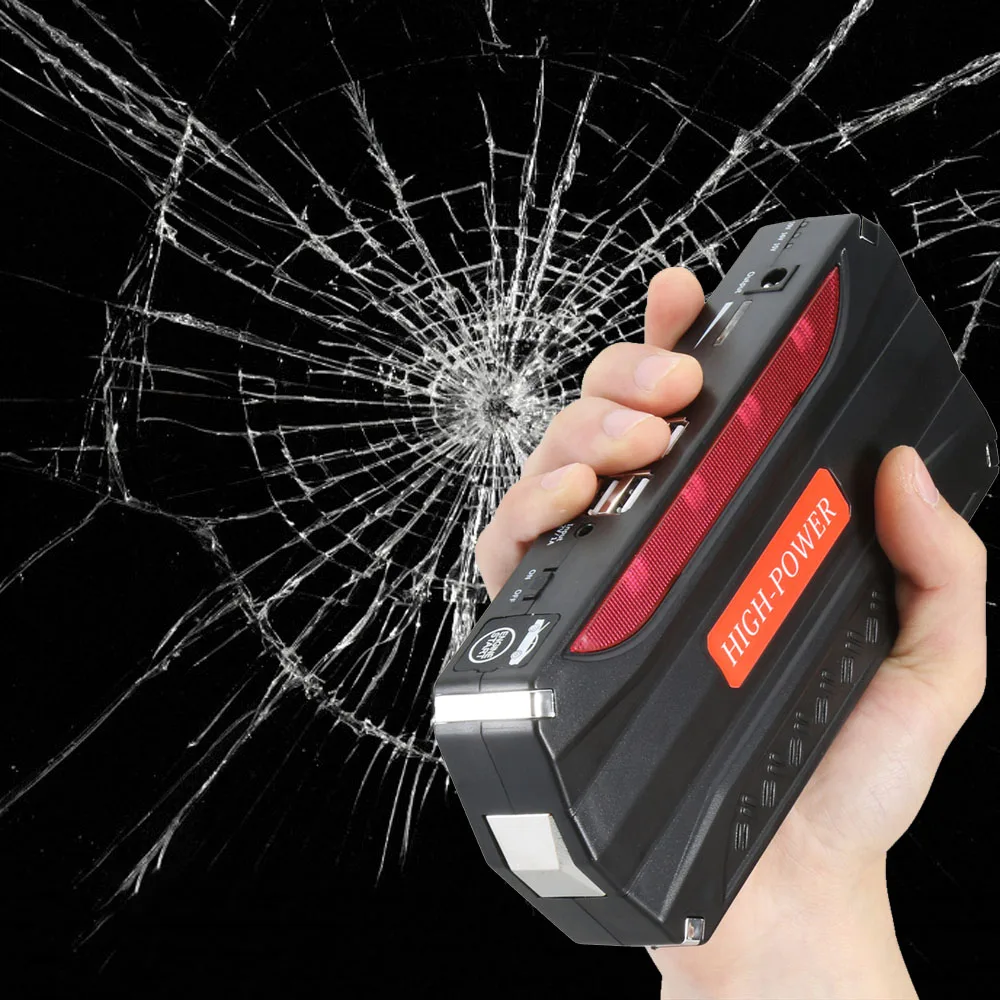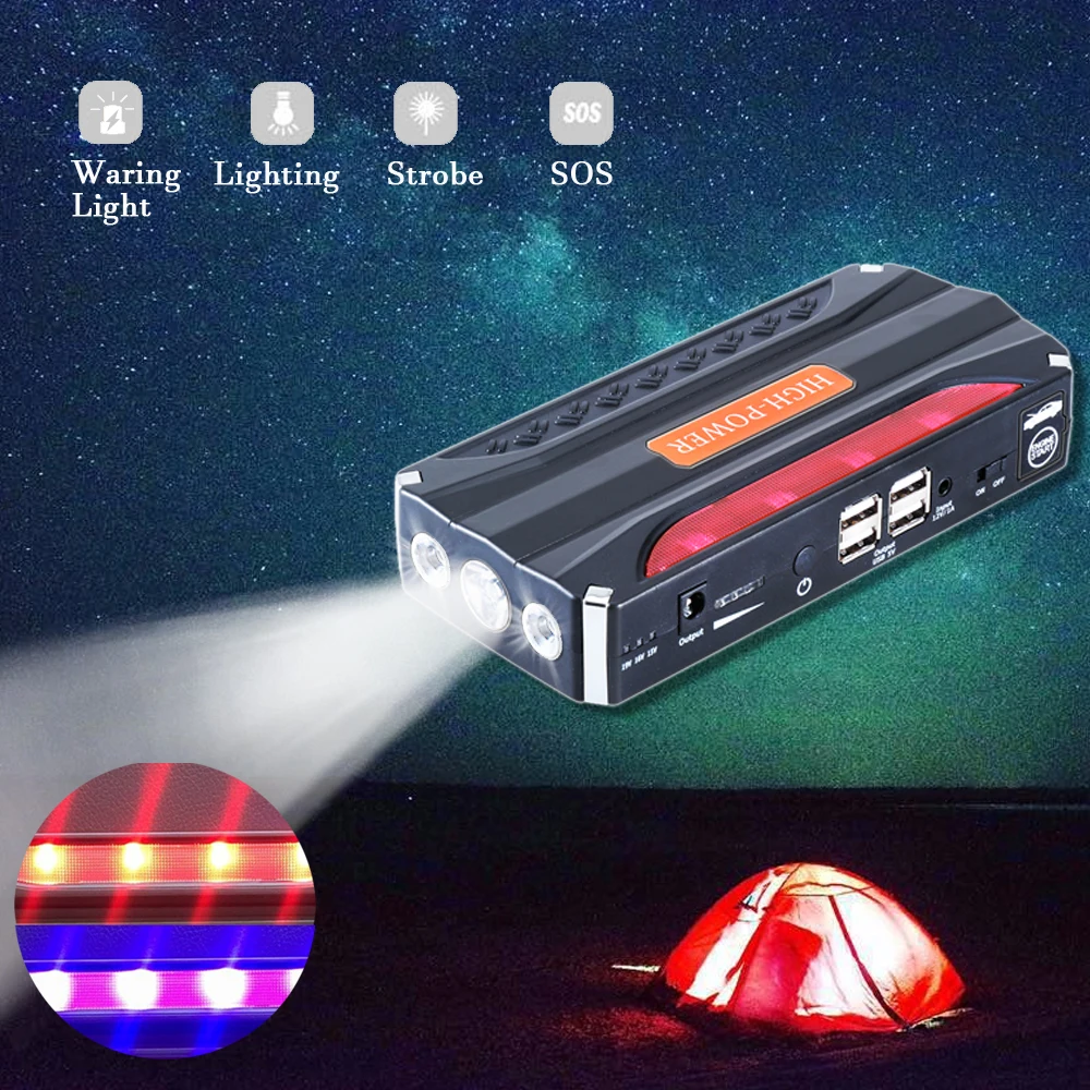 Для запуска 12В бензинового автомобиля (до 3,5л) и дизельного автомобиля (до 2,5л) всего за секунды, когда аккумулятор автомобиля сдох; Mini & Многофункциональный Power Bank; 5V/2A 4 USB порта для сотовых телефонов/планшета/камеры, зарядка одновременно; 15V/16V/19V выход для зарядки большинства ноутбуков; освещение/Стробоскоп/SOS/Сигнальные огни, Предупреждение ительные огни эффективнее, чем предупреждающие треугольники в аварии; Аварийный и предохранительный молоток.