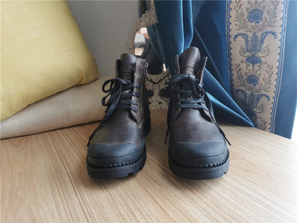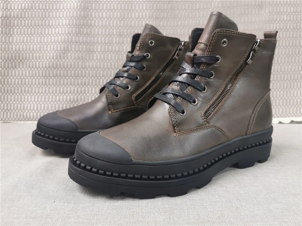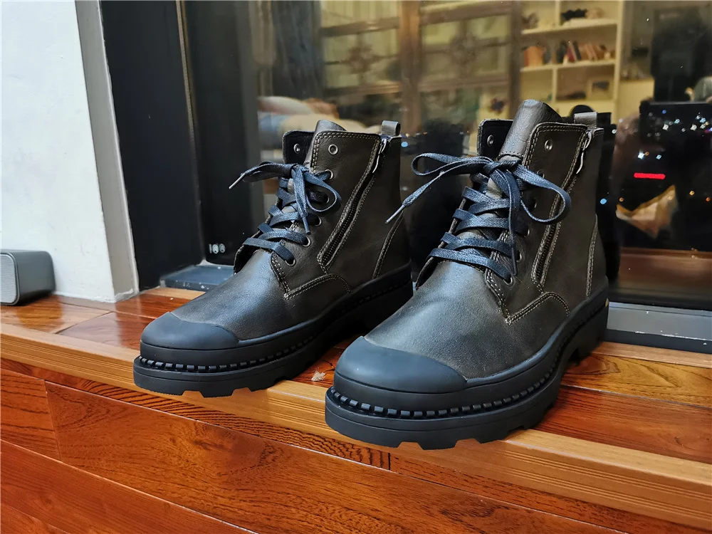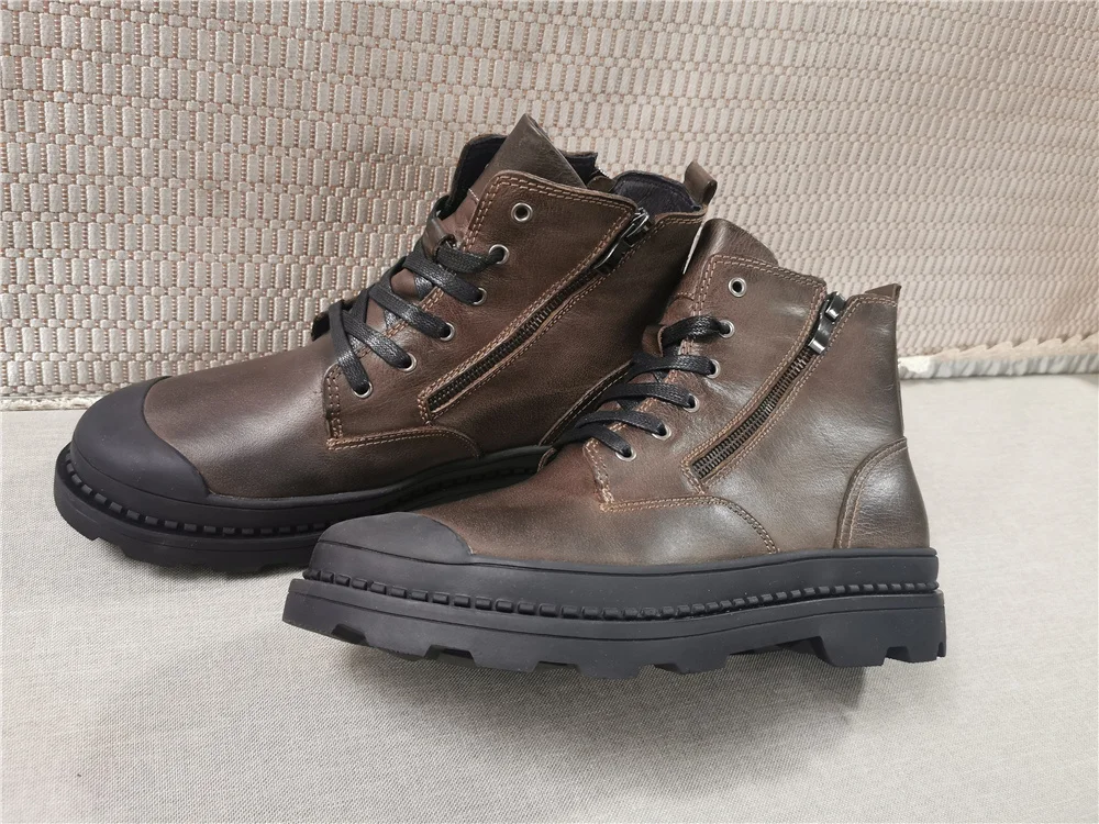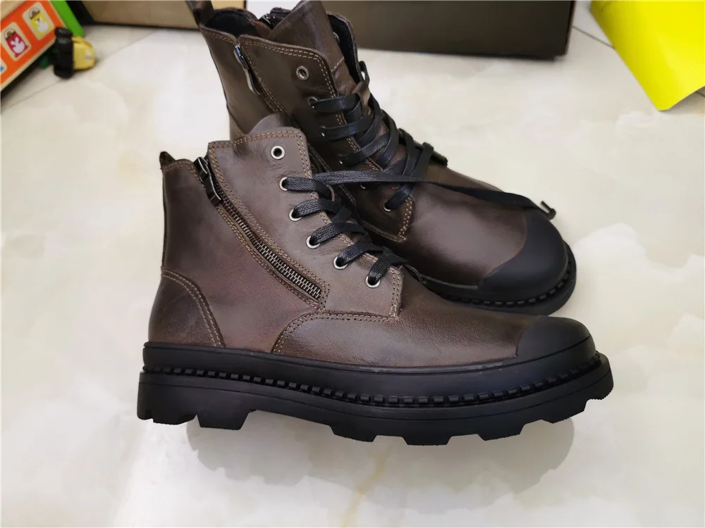 Мужские ботинки из натуральной коровьей кожи, зимние ботинки ручной работы в стиле ретро, Мужская зимняя обувь из натуральной кожи, # CX9550