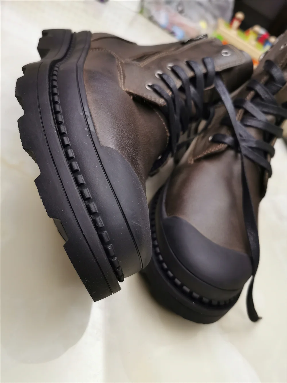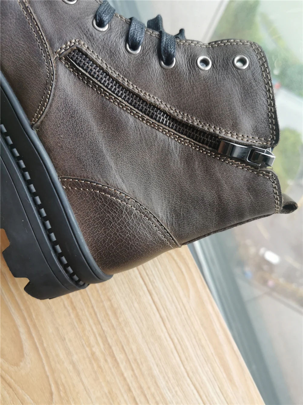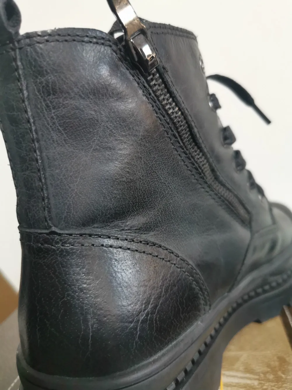 "Качество отличное, мягчайшая кожа . Внутри прослойка из искусственного меха,не лезет, внешнее покрытие очень качественное, так что , слякоть и осенние лужи в них не страшны. Ботинки на шнуровке, хотя она больше как декор, так как есть удобная боковая молния.Ногам очень комфортно. В магазине представлены в двух цветах . Покупали размер 42р, на длину стопы 26.5 см, сели очень комфортно! У данного бренда заказываем не в первый раз и у него обувь идёт размер в размер!! Обратите на это внимание! Подошва рельефная , достаточно широкая, чтобы выдержать любую непогоду . Ботинки очень легки в уходе. Прошивка отличная, все швы ровные, нитки не торчат, клея нет. Доставка до Москвы с треком 12 день. Однозначно рекомендую."