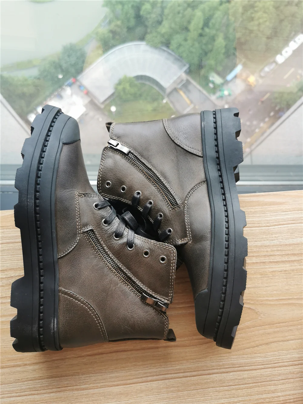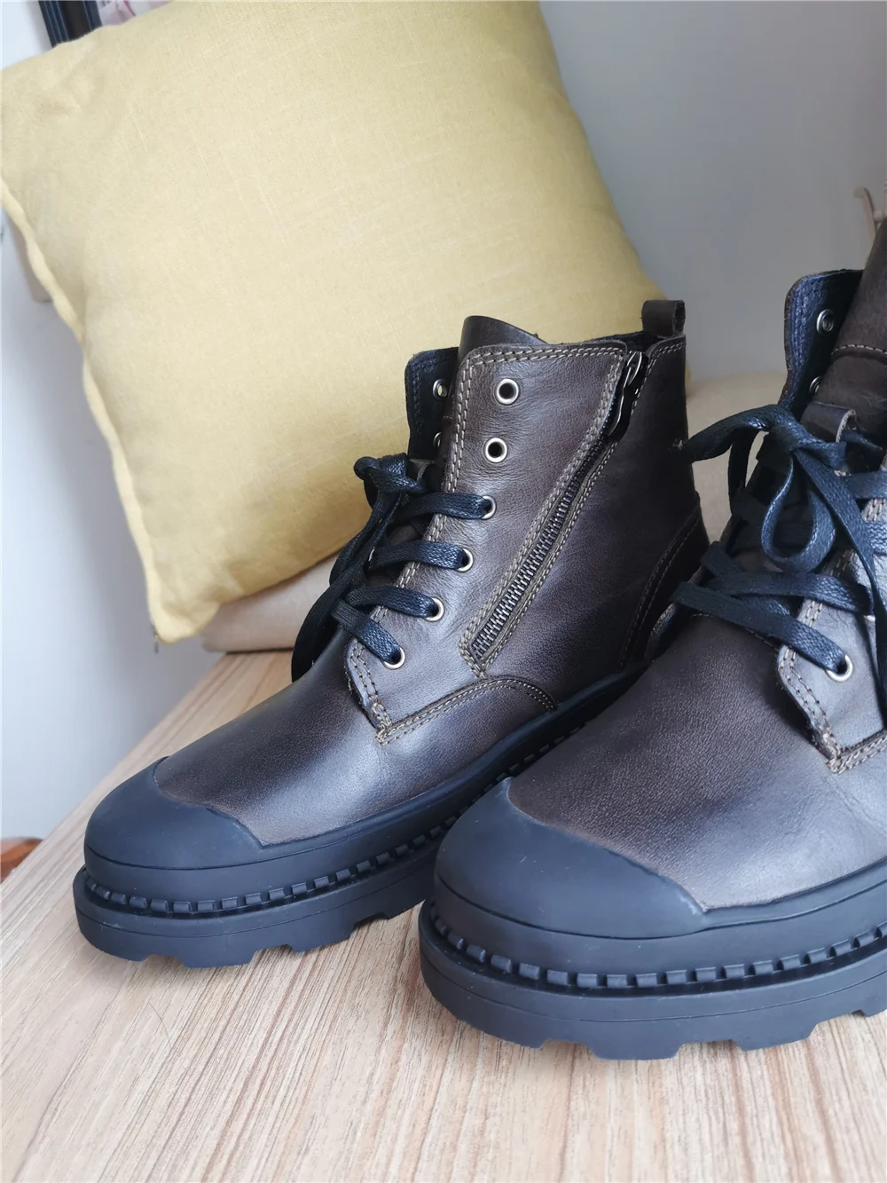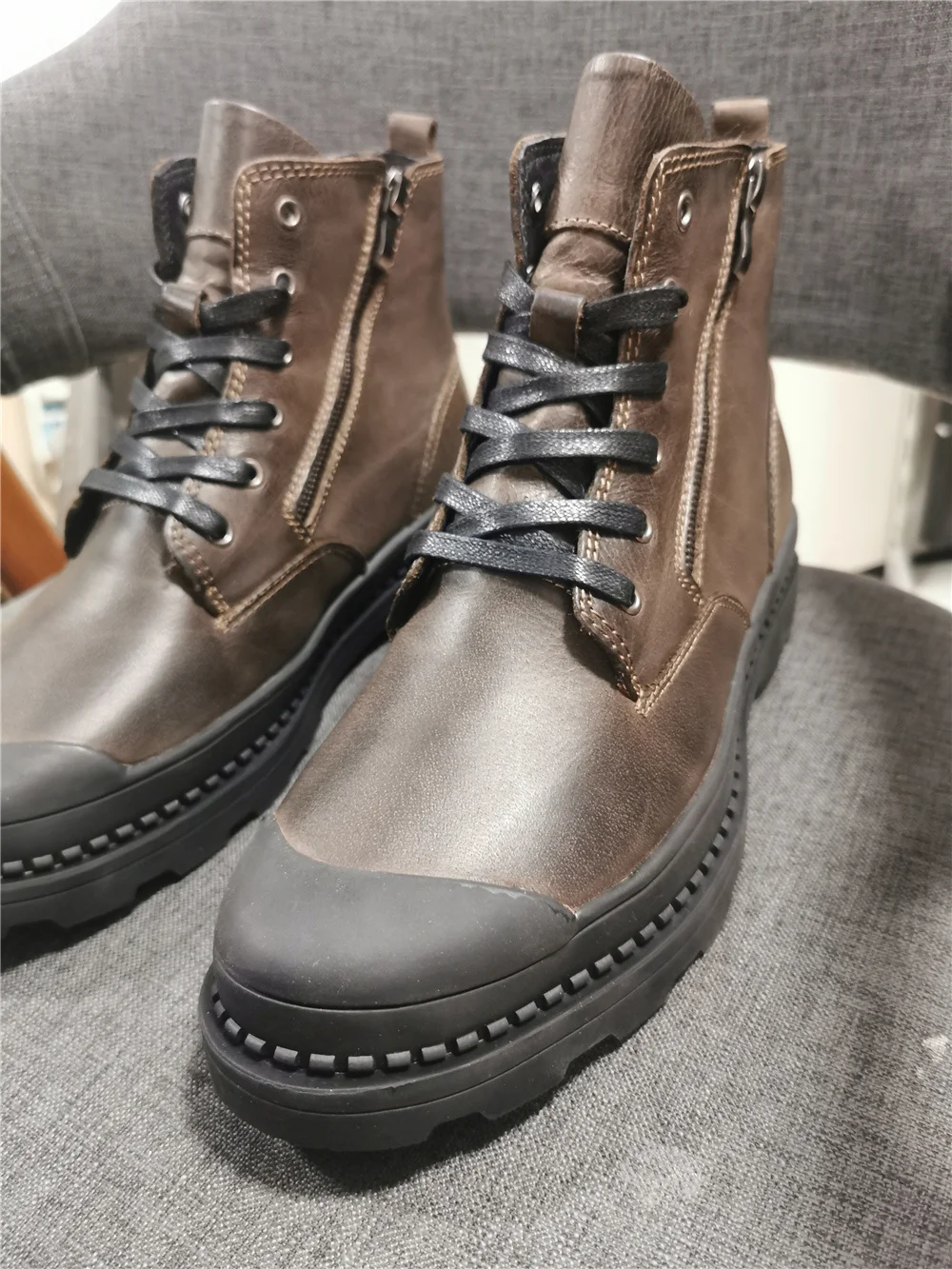 "Качество отличное, мягчайшая кожа . Внутри прослойка из искусственного меха,не лезет, внешнее покрытие очень качественное, так что , слякоть и осенние лужи в них не страшны. Ботинки на шнуровке, хотя она больше как декор, так как есть удобная боковая молния.Ногам очень комфортно. В магазине представлены в двух цветах . Покупали размер 42р, на длину стопы 26.5 см, сели очень комфортно! У данного бренда заказываем не в первый раз и у него обувь идёт размер в размер!! Обратите на это внимание! Подошва рельефная , достаточно широкая, чтобы выдержать любую непогоду . Ботинки очень легки в уходе. Прошивка отличная, все швы ровные, нитки не торчат, клея нет. Доставка до Москвы с треком 12 день. Однозначно рекомендую."