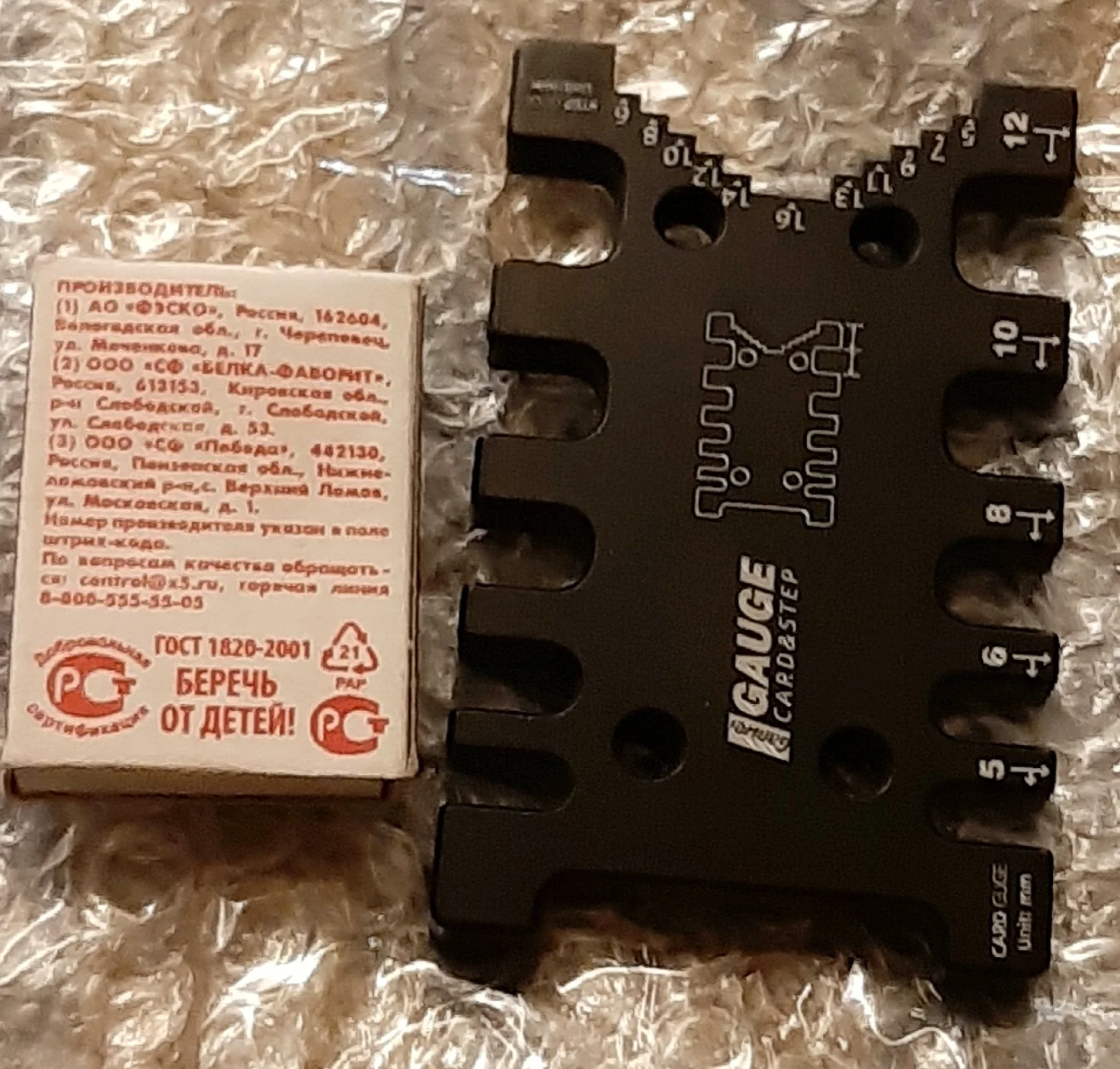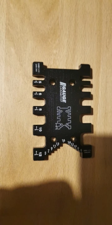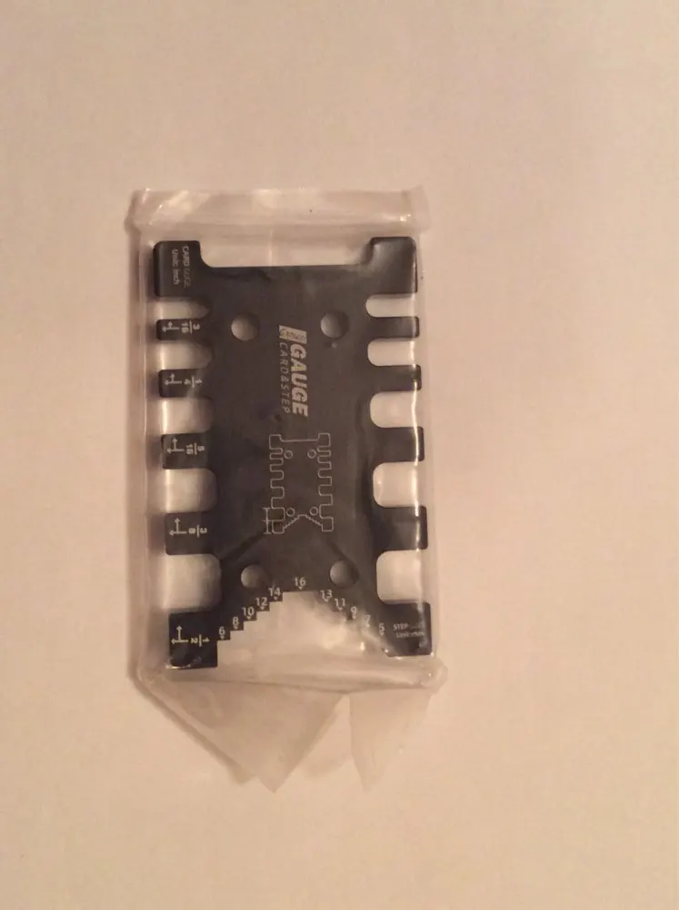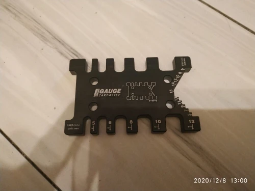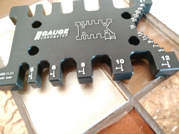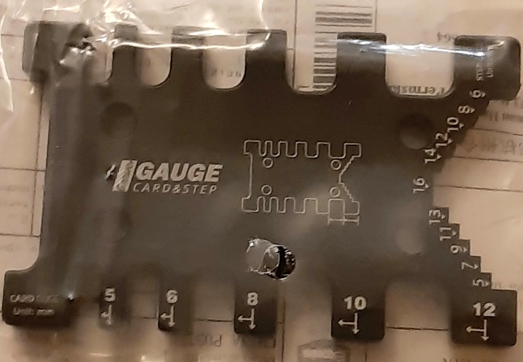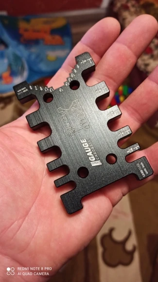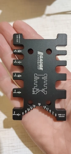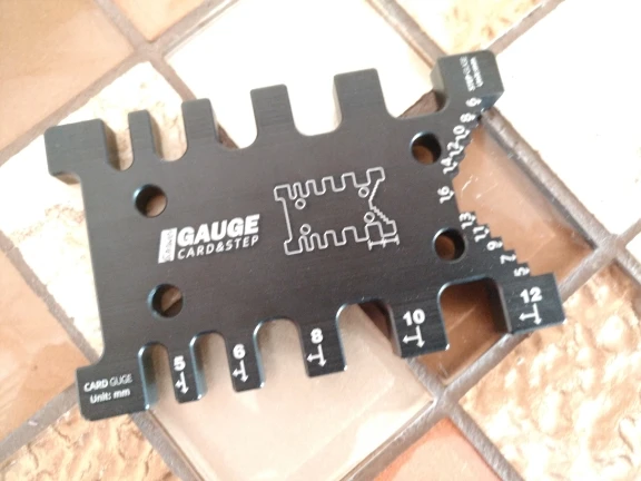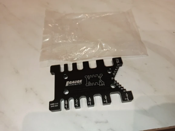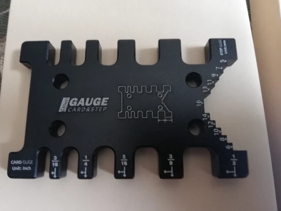 пластина хорошего качества, размеры соответствуют, проверил штангенциркулем. Надписи вроде как гравировка с последующей окраской. С одной стороны все в миллиметрах, с другой в дюймах, но только card guge, а step guge также в миллиметрах. Доставка в почтамат пятерочки почти месяц
