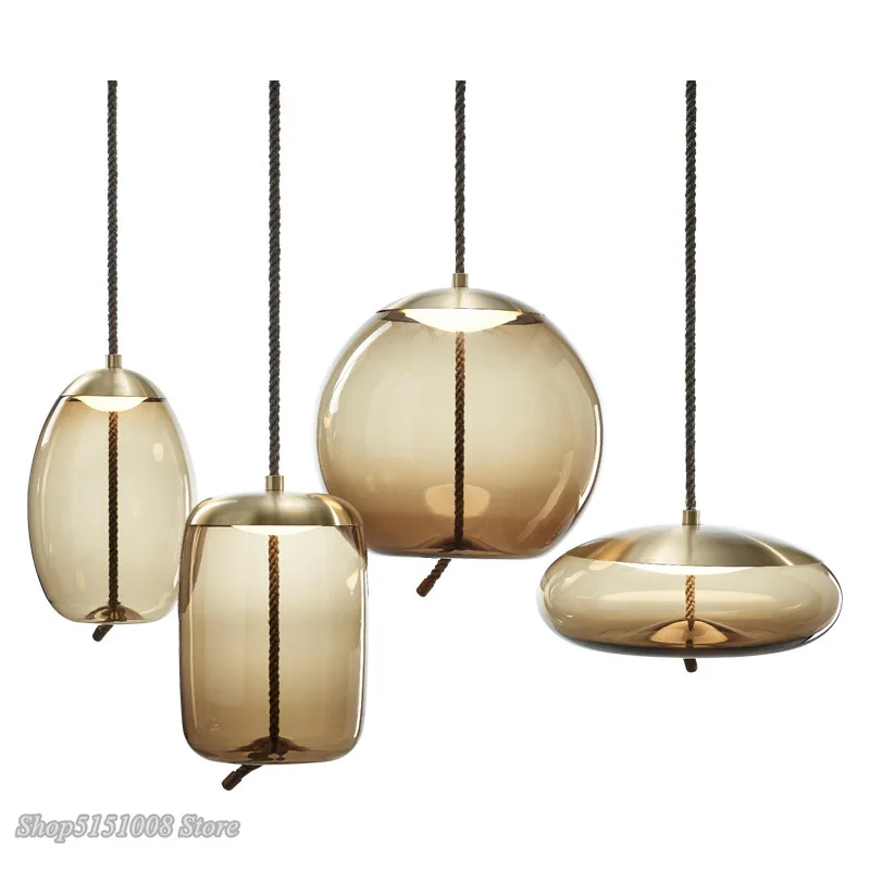 Современная стеклянная Подвесная лампа из льняной веревки, минимали...
