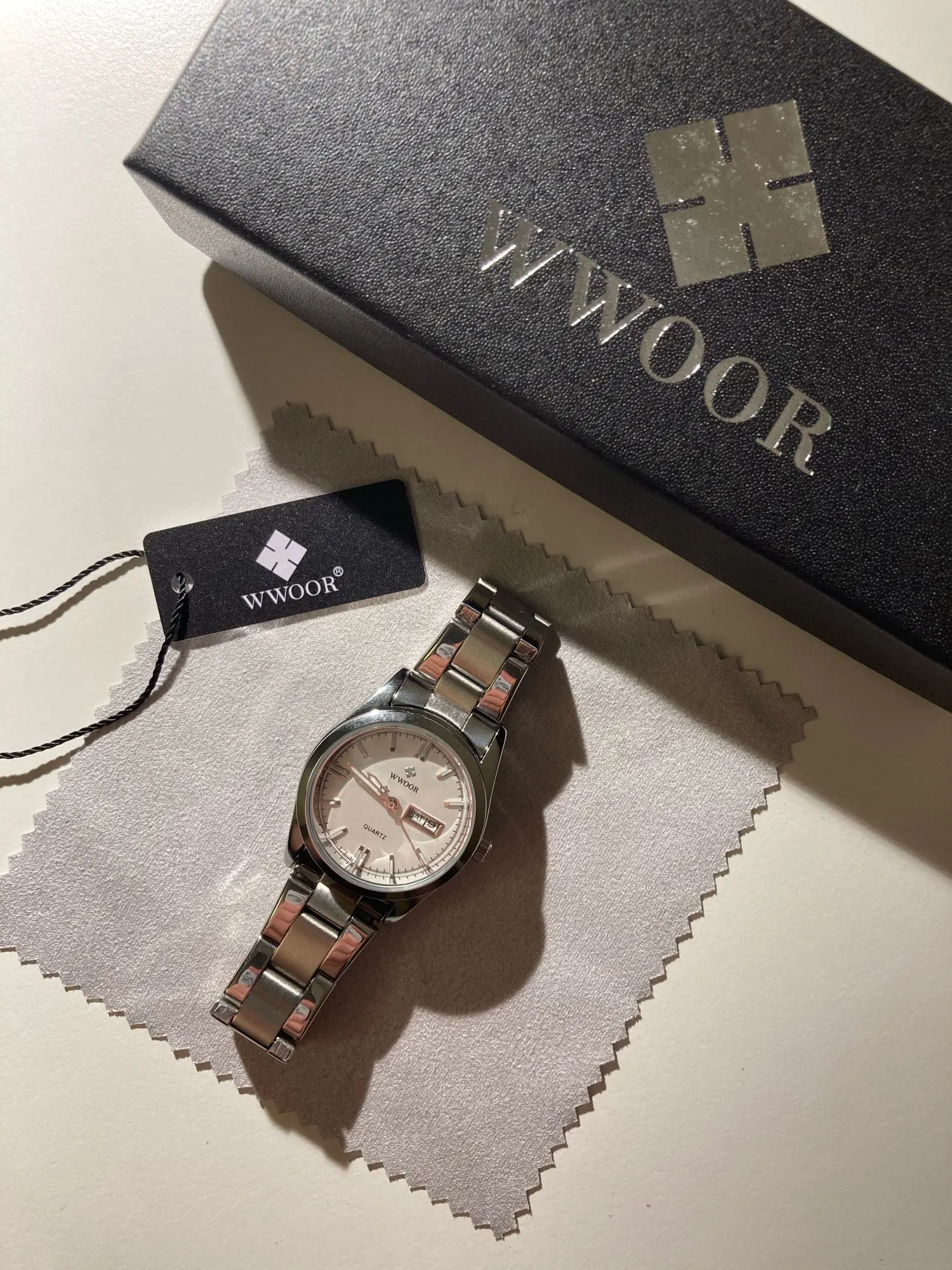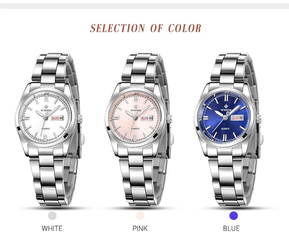 Женские кварцевые часы WWOOR, серебристые водонепроницаемые часы с автоматической датой, наручные часы, 2021