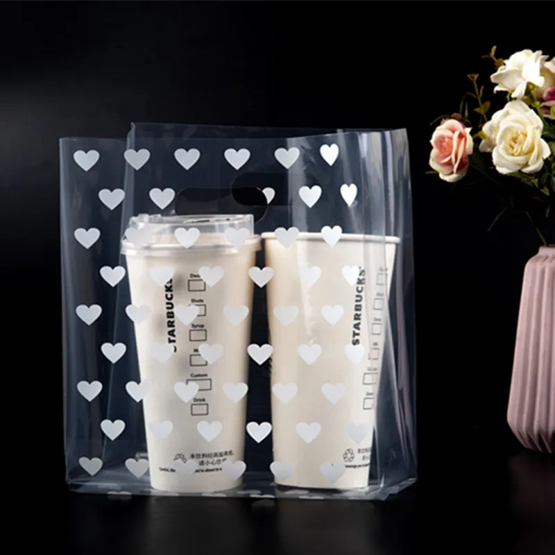 50 шт., пластиковые пакеты с ручкой в виде сердца