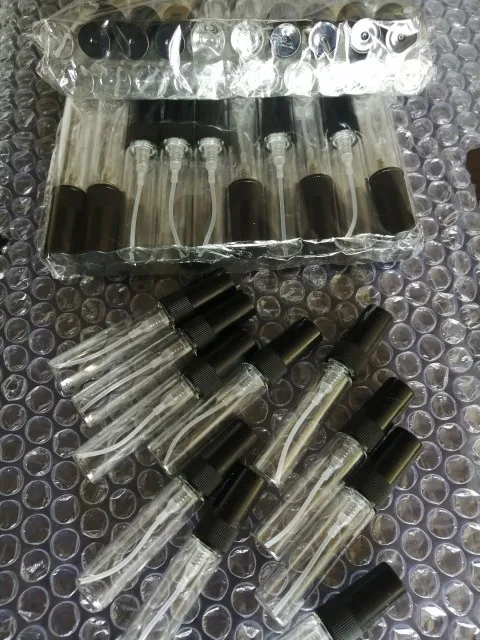 100 шт.лот 5 мл мини стеклянная бутылка-распылитель для образца черного цвета прозрачный стеклянный распылитель пустая бутылка