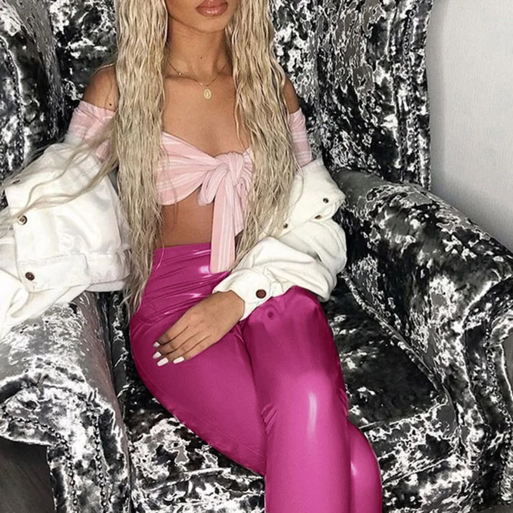 Женские Длинные латексные брюки hirigin, из искусственной кожи с вы...