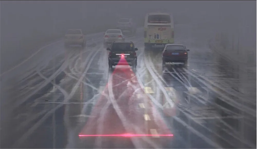 Новейший Разработанный лазерный противотуманный светильник-это установка красного лазерного передатчика в задней части транспортного средства для проецирования лазерного луча через воздух на землю в дождливую и туманную погоду. Легче найти, чем традиционный противотуманный светильник, и проникающая сила его сильнее. Это может напомнить позади транспортного средства, чтобы поддерживать безопасное расстояние. Лазерный луч снимается вниз с определенным углом наклона, чтобы гарантировать отсутствие прямого воздействия на глаза. Откройте светильник в солнечную погоду, только чтобы увидеть красную линию, проецируемую на земле, не нужно беспокоиться о том, что она защитит номерной знак транспортного средства.