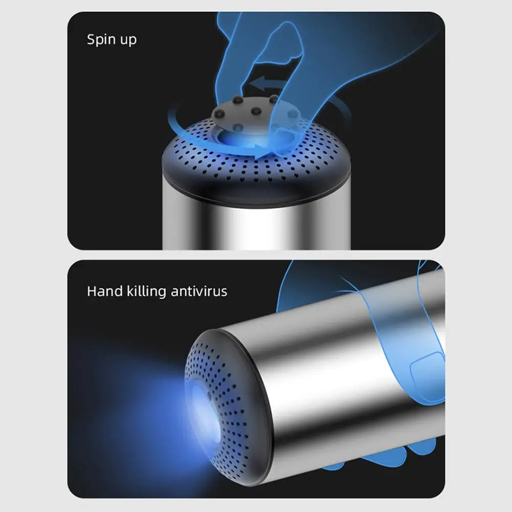 UVC ultraviolet sterilizationAnion purificationOzone disinfectionAluminum alloy bodySmall and lightQuiet operationBuilt-in 2000mAh batterySuitable for spaces in the car, living room, bedroom, kitchen, bathroom, etc., thorough light sterilization, effectively eliminating bacteria in the living environmentSpecification:Name: Ultraviolet Lamp Ozone Disinfection and Sterilization Filter for Home CarBattery capacity: 2000mAhLife time: 4 hoursWorking voltage: 3.7VPower: 10WApplicable space: 5-10㎡Input voltage: 5V / 2ACharging: about 3 hours fullMaterial: aluminum alloy + ABSCharging port: Micro-USBPacking List:1 x Air Sterilization Filter1 x USB Power Cable1 x Instructions