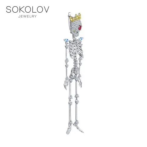 Серьга SOKOLOV из золочёного серебра с корундом и фианитами, 1 шт., Серебро, 925, Женская, Серьги 2022 тренд