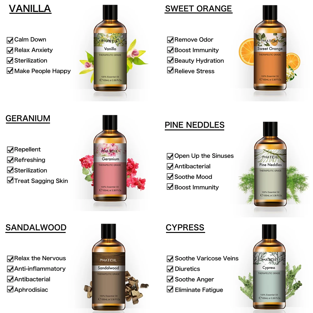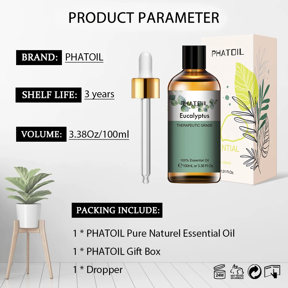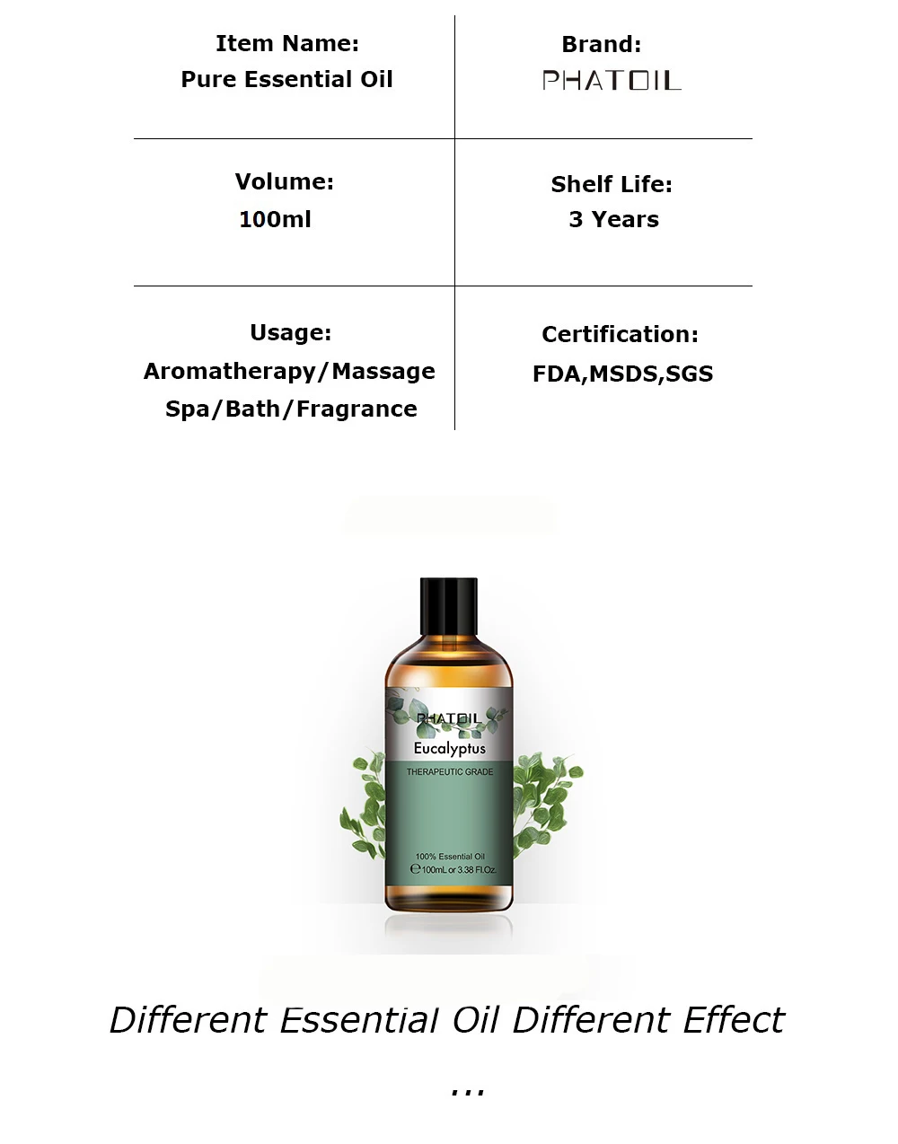 Эфирное масло эвкалипта, 100 мл, чистые натуральные эфирные масла, лаванда, ваниль, сандаловое дерево, ромашка, лимон, чайное дерево