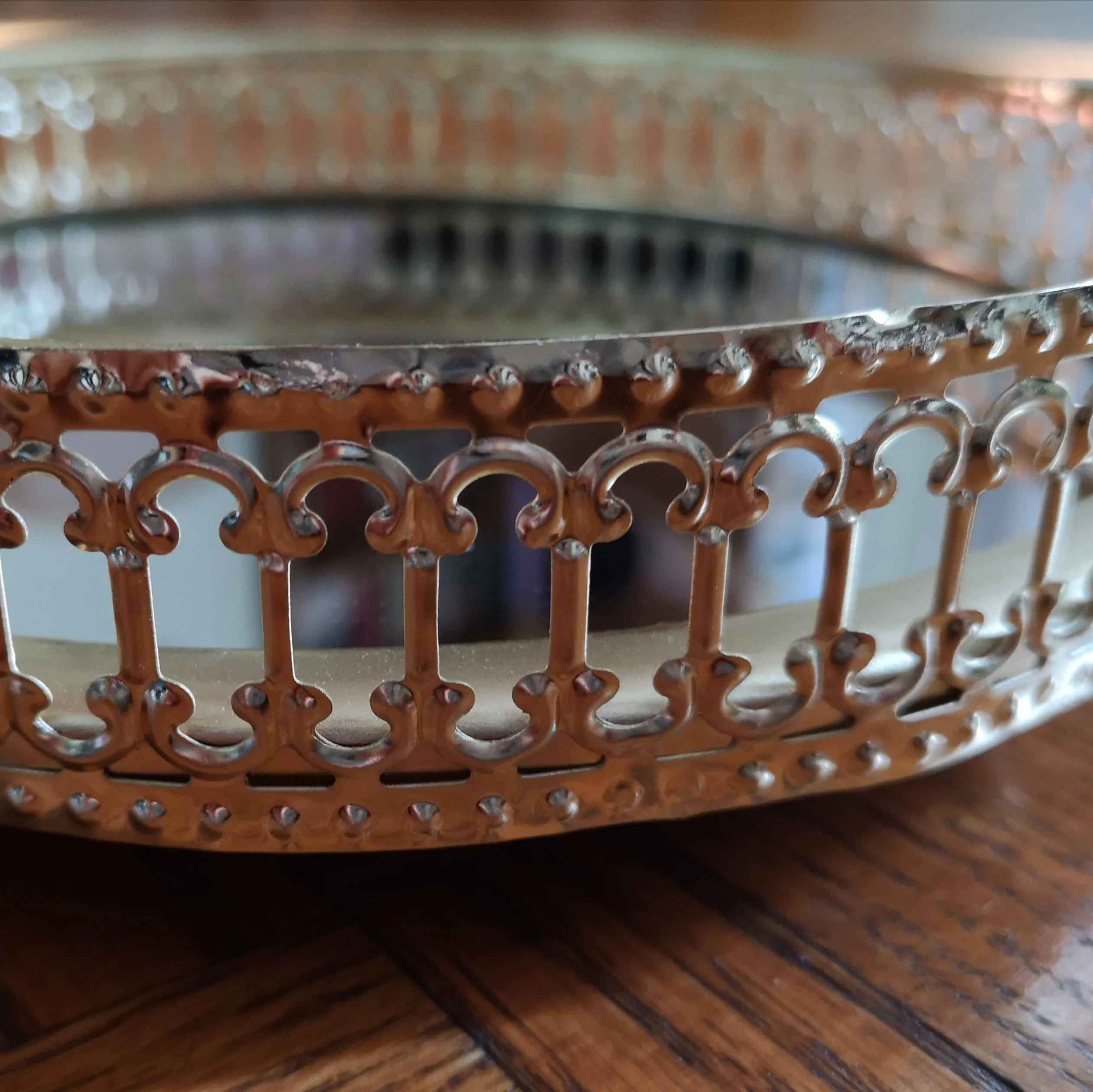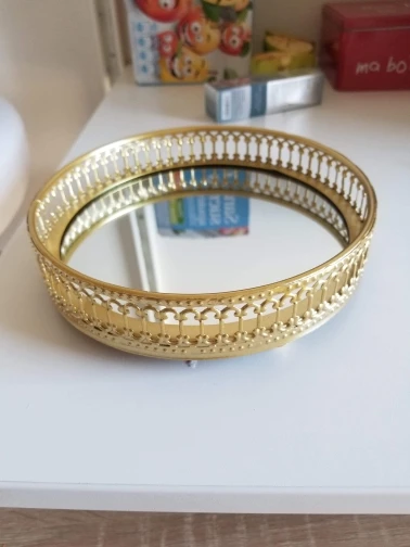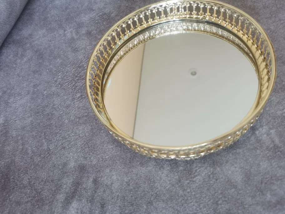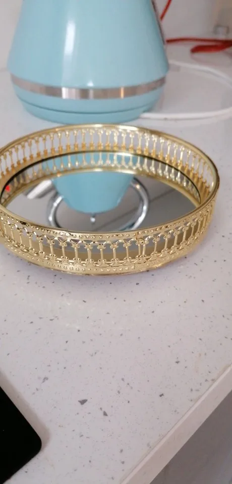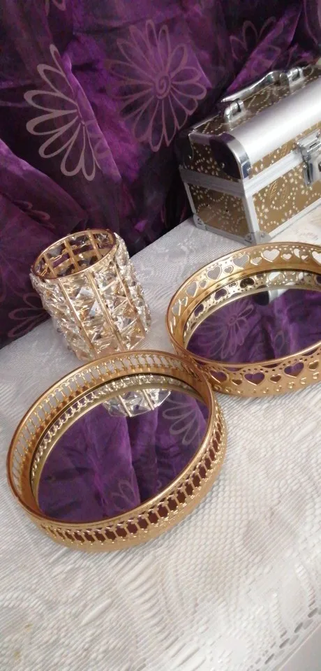 Поднос для хранения ювелирных изделий золотистого цвета, стеклянная зеркальная подставка, Настольная декоративная тарелка для хранения ювелирных изделий