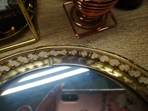 Очень небрежное качество. Ободок изогнутый и не гладкий, потому что он был приклеен без ухода. На краях также были темные липкие пятна. Зеркало вращается вокруг, потому что не крепится прочно. Продавец упаковал очень хорошо, поэтому я дам 2 звезды в благодарности. Хотя цена низкая, стоимость доставки не была, поэтому в целом за то, что я заплатил, Я разочарован.