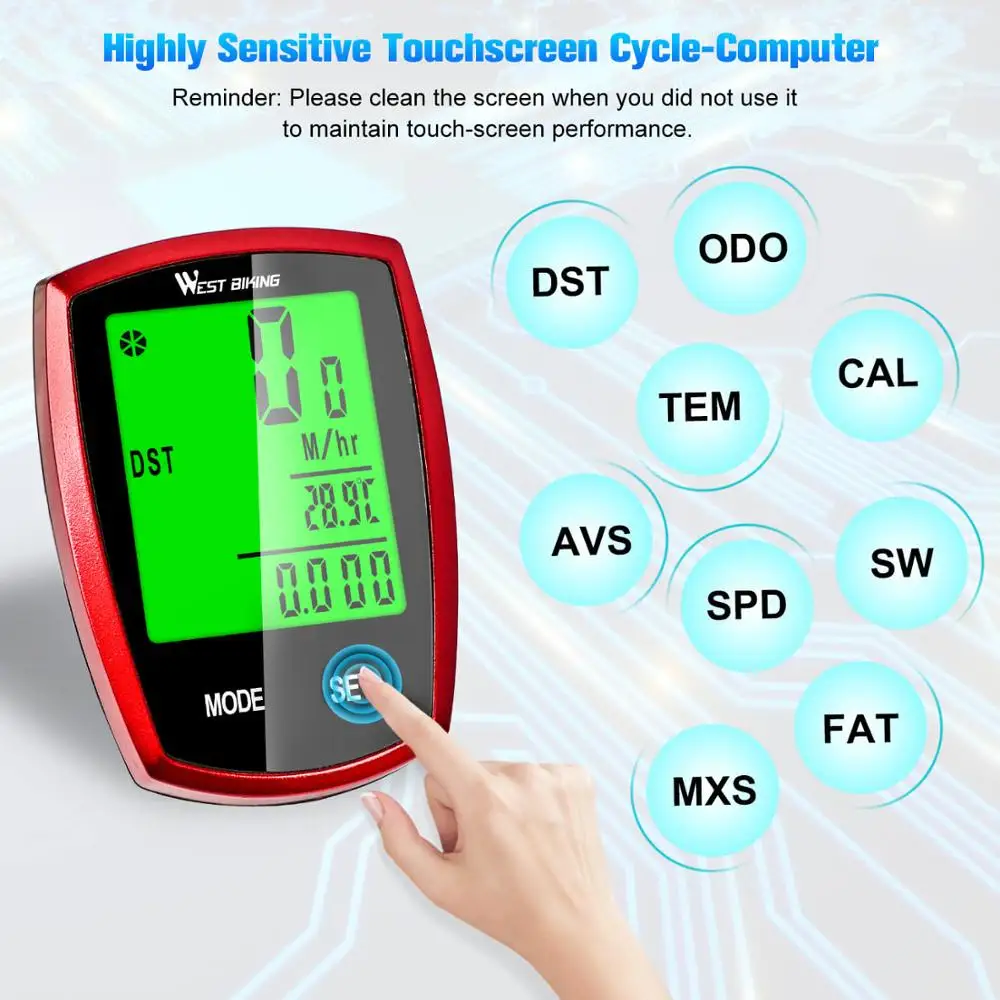 WEST BIKING велосипедный компьютер беспроводная проводка велосипедный спидометр, одометр секундомер сенсорный велосипедный Компьютер Водонепроницаемый 22 функция
