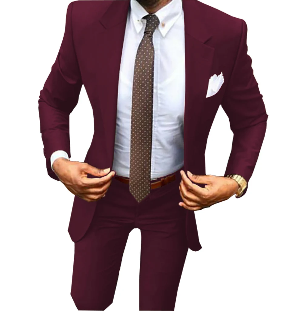 Модный бордовый мужской костюм, облегающий смокинг из 2 предметов для выпускного вечера, классический свадебный костюм для женихавечеривечерние (Блейзер и брюки), новинка 2020