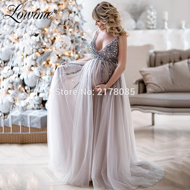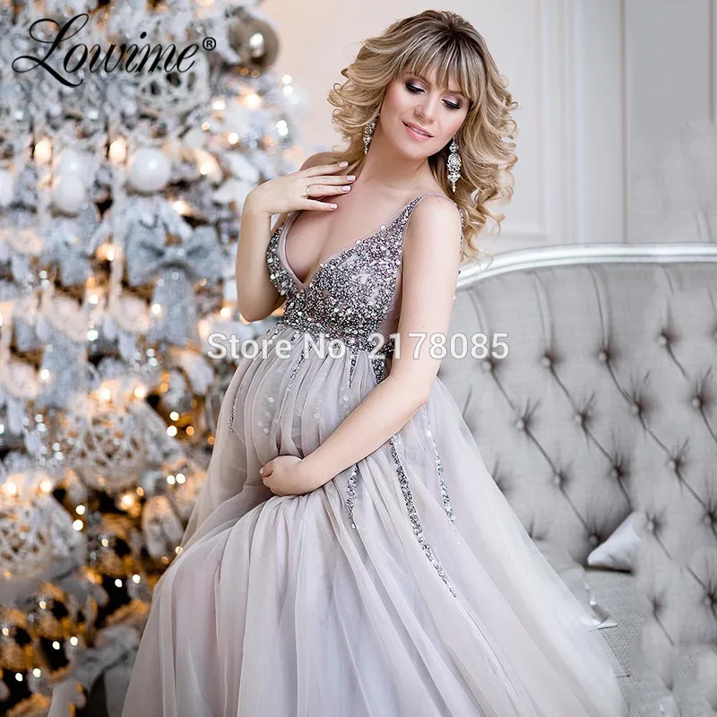 Вечерние платья для беременных с V-образным вырезом и бусинами, вечернее платье на заказ, 2020, вечернее платье для выпускного вечера