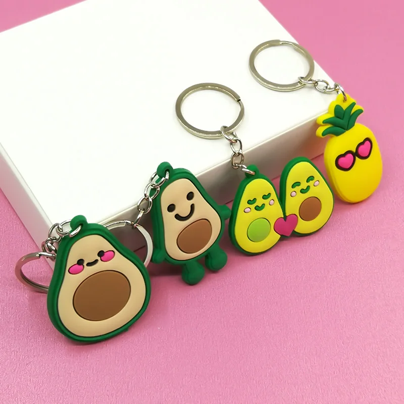 Брелок для ключей из ПВХ, 20 шт., Подсолнухи, авокадо, яблоко, какт...