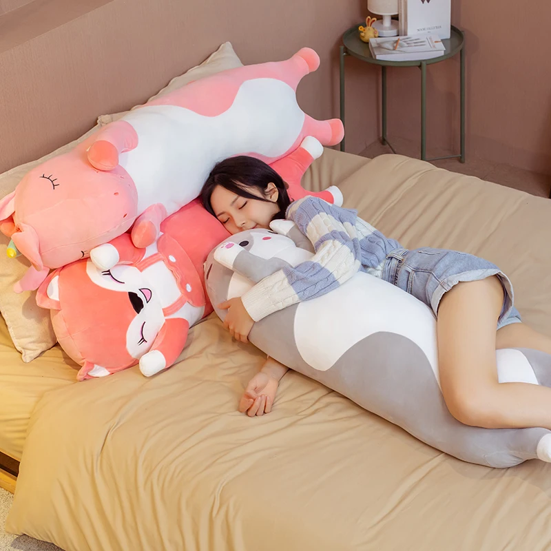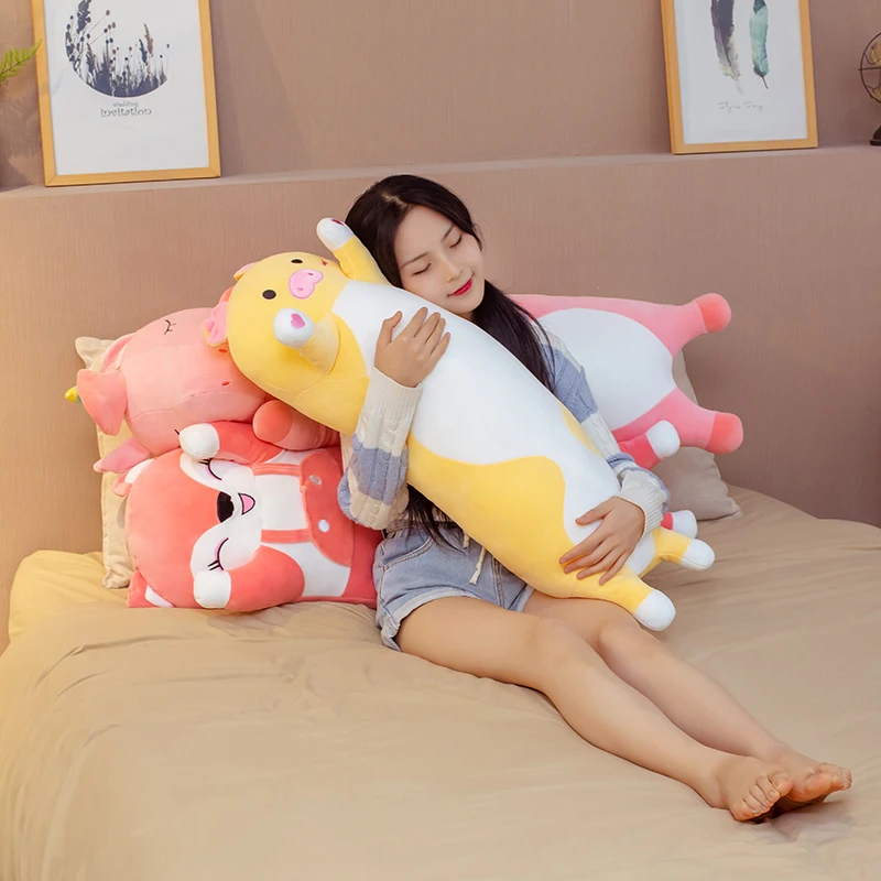 Плюшевые игрушки, животные, кошка, единорог, динозавр, милые Креативные длинные мягкие игрушки, Офисная Подушка для сна, набивная Подарочная кукла для детей