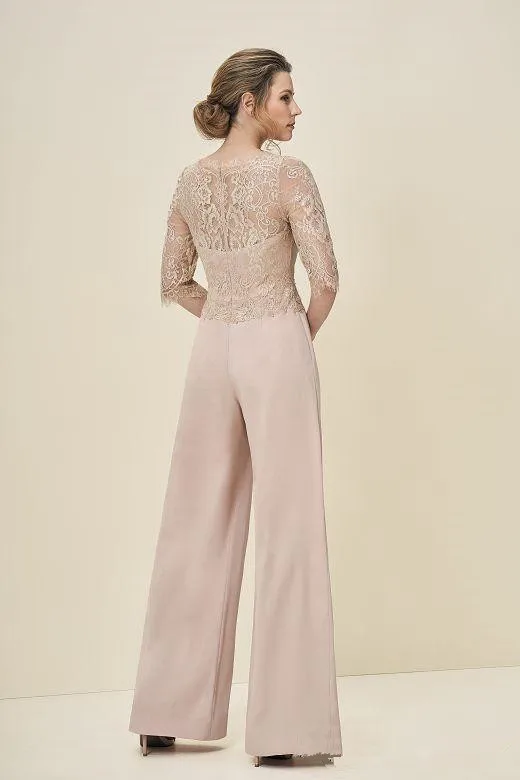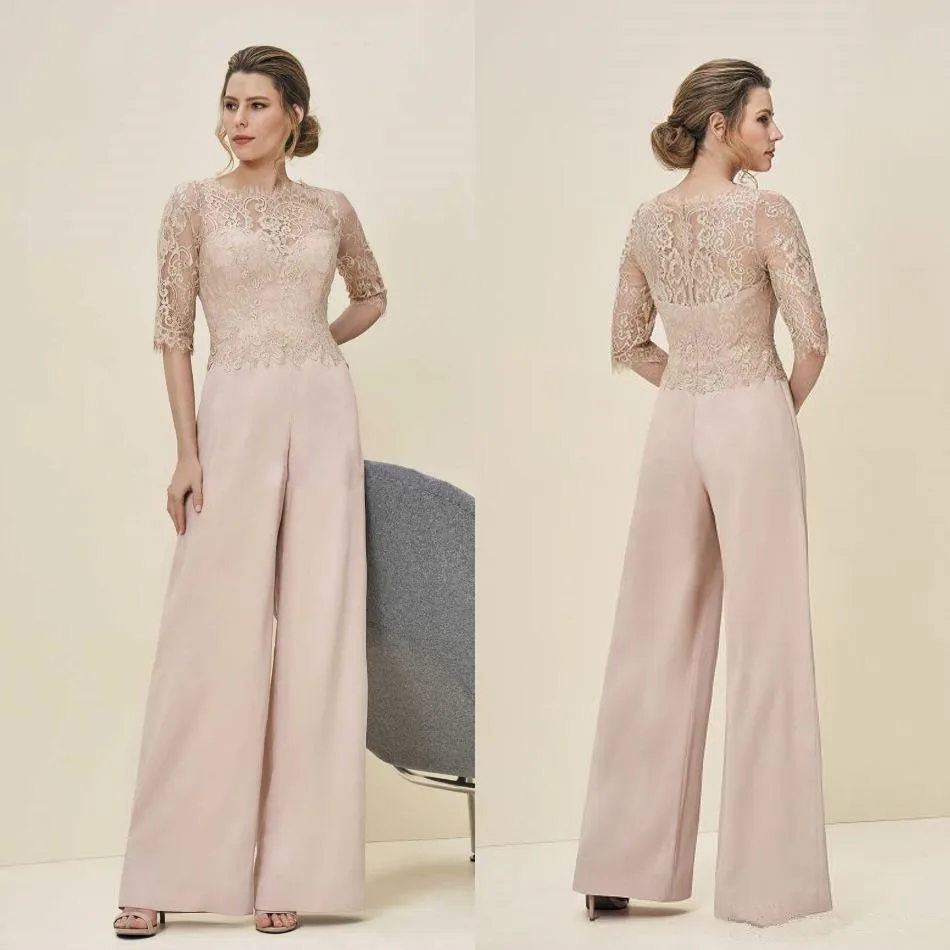 Кружевные платья для матери невесты с коротким рукавом, костюм с круглым вырезом и брюками на молнии сзади, вечерние платья, длинный комбинезон, женская одежда для банкета