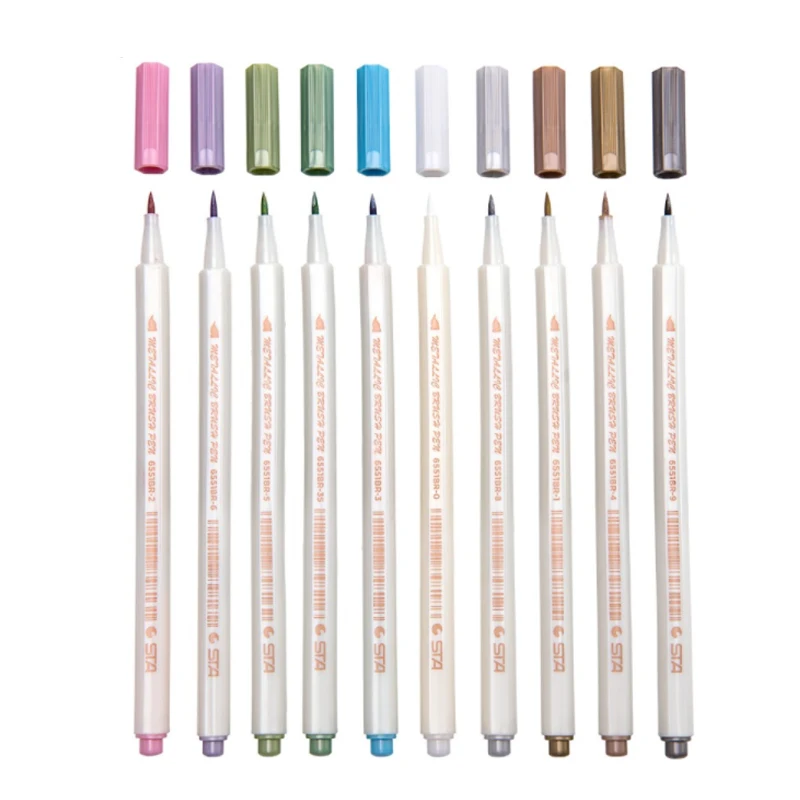 Набор металлических кистей STA 10 цветов, набор ручек сделай сам для скрапбукинга, рукоделия, мягкий наконечник, рисование на керамической карте, стеклянный маркер, кисть, художественные маркеры