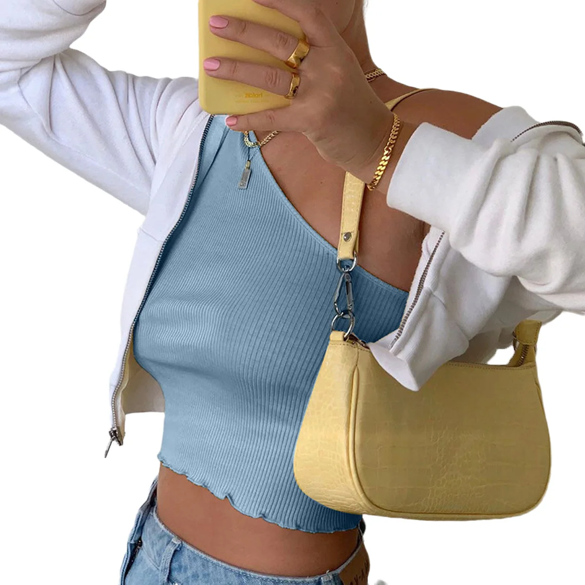 Женские однотонные летние футболки без бретелек с одним рукавом, по...