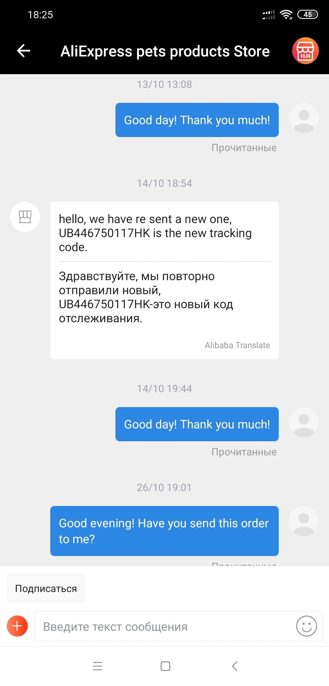 Заказ не прибыл, хотя был возвращен, спасибо AliExpress.