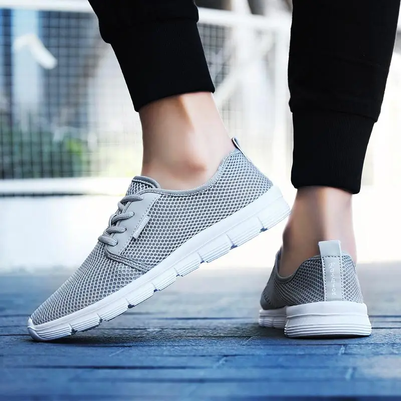 Размера плюс дышащие спортивные мужские кроссовки для бега женские спортивные кроссовки Мужская Летняя мужская обувь для ходьбы серые сникерсы обувь A-423