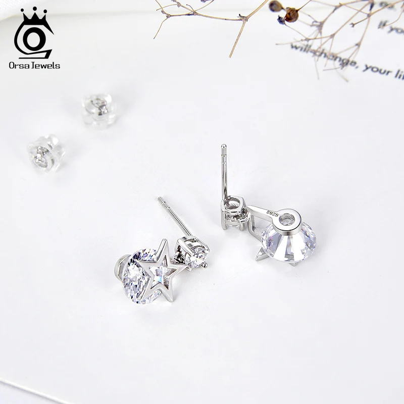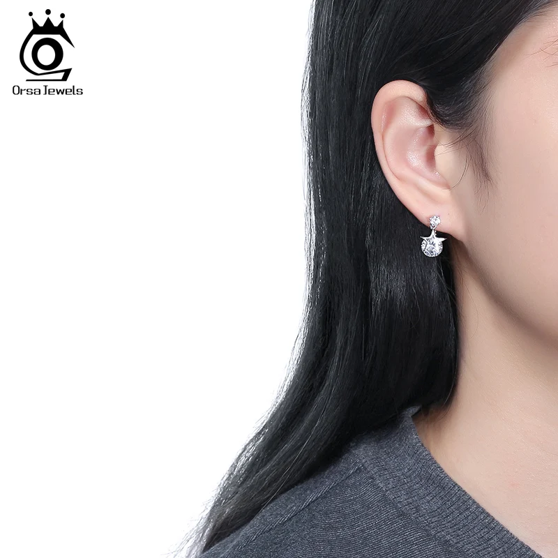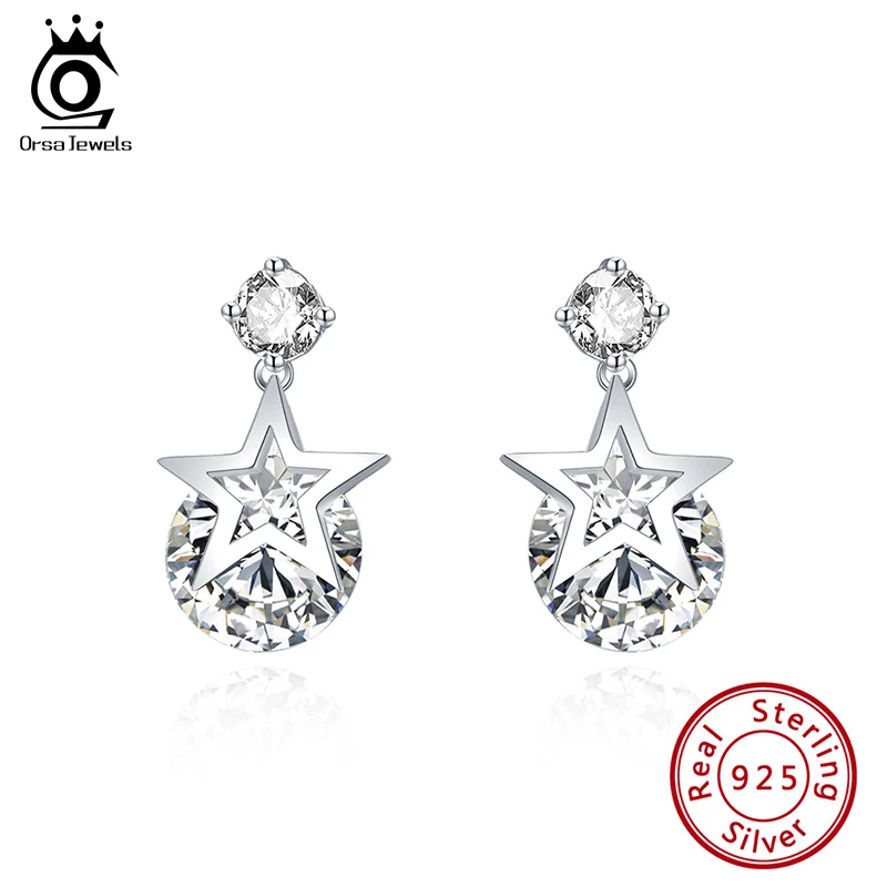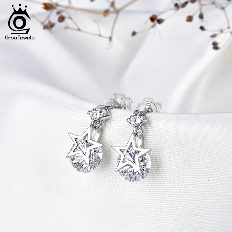 ORSA JEWELS элегантное дизайном в виде прозрачных звездочек, 16 мм висячие серьги с большой Crystle блестящие 4A циркон серьги женские ювелирные украшения подарок дропшиппинг OSE311