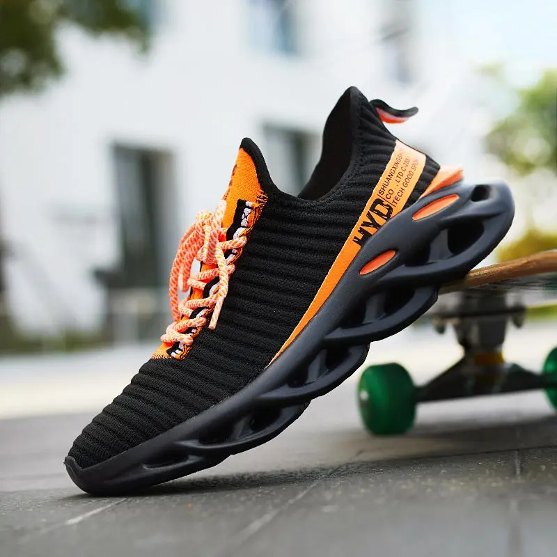 Кроссовки спортивные мужские легкие, вязаные кеды для бега, летняя спортивная обувь для фитнеса, оранжевые, B-416, белые
