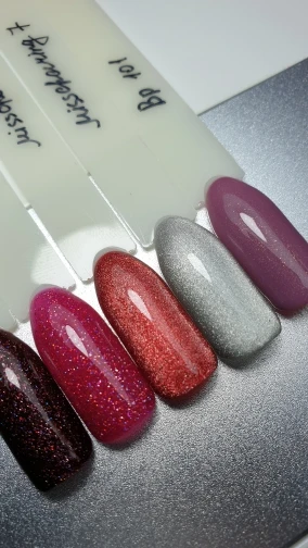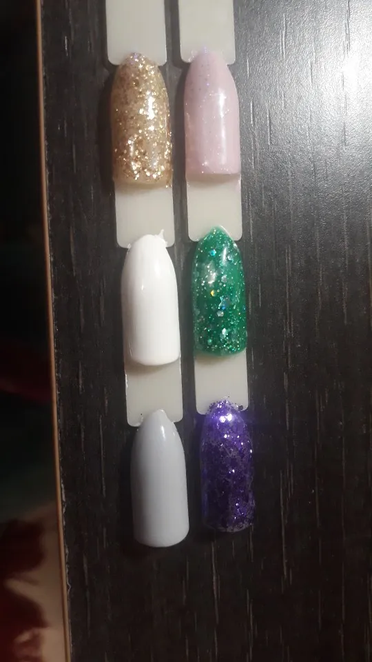 Ужасно долго шла посылка!!!! Более трех месяцев. Было несколько споров с продавцом. Блёстки крупные, в один слой не перекрывают ноготь, нужно 2-3 слоя, но тогда не нужно выравнивать ноготь базой, иначе будет большая толщина.