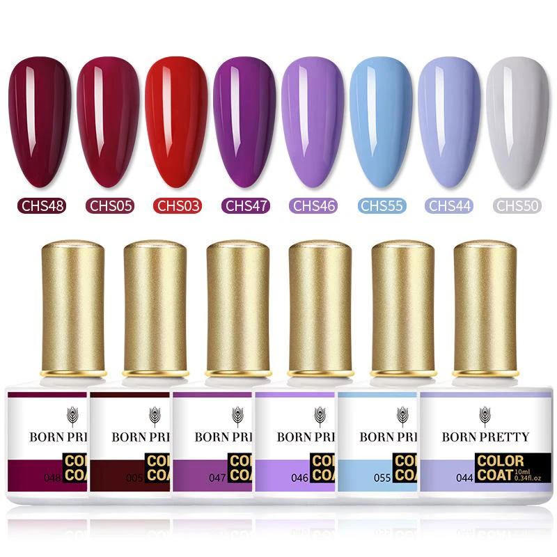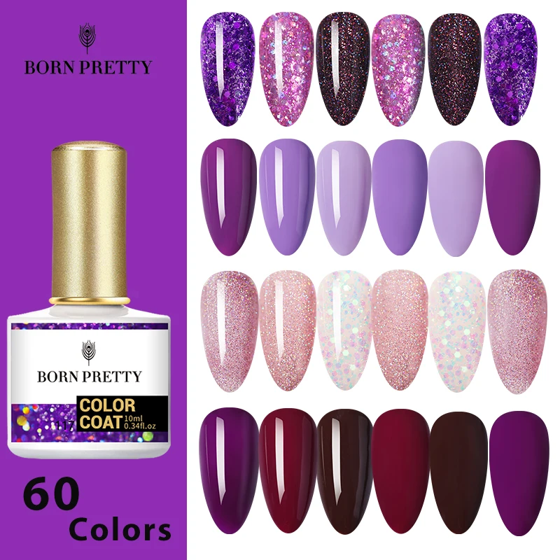 Гель-лак для ногтей BORN PRETTY, 60 цветов, 10 мл, удаляемый замачиванием пурпурный цвет, Ультрафиолетовый гель с блестками Полупостоянный, верхнее покрытие, лак для ногтей