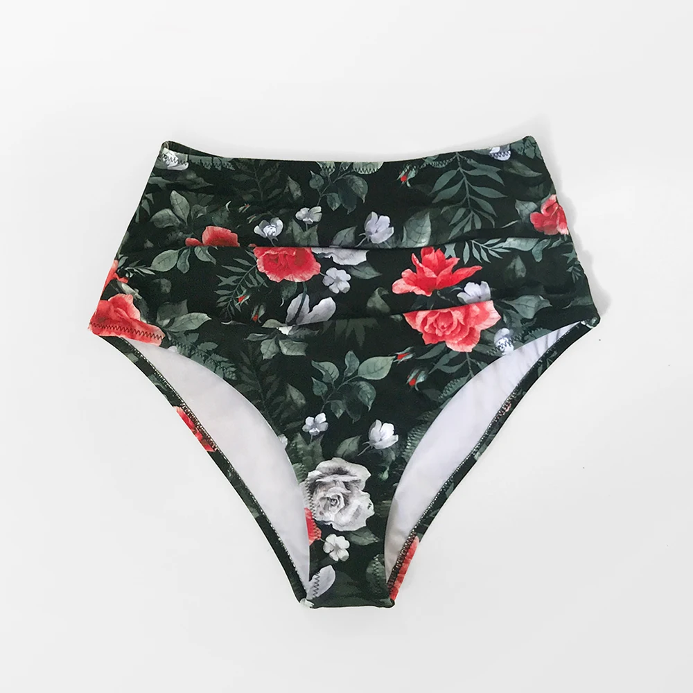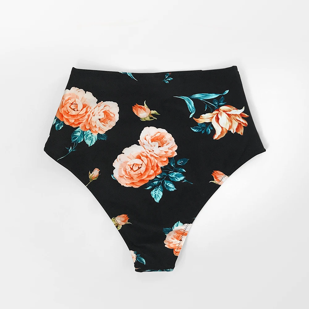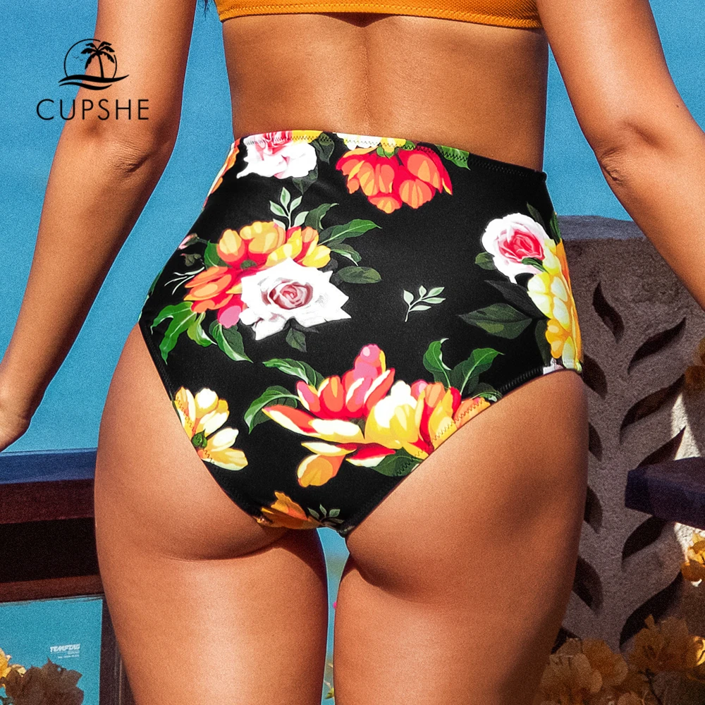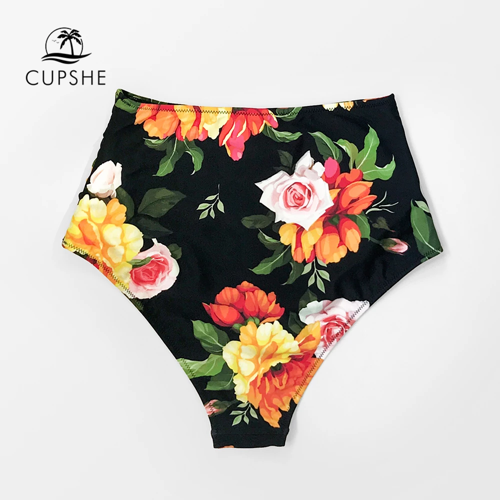 CUPSHE, черный, цветочный принт, рубашка, высокая талия, бикини, низ, женские, сексуальные, тонкие трусики, бикини, трусы, 2022, купальник, купальный низ