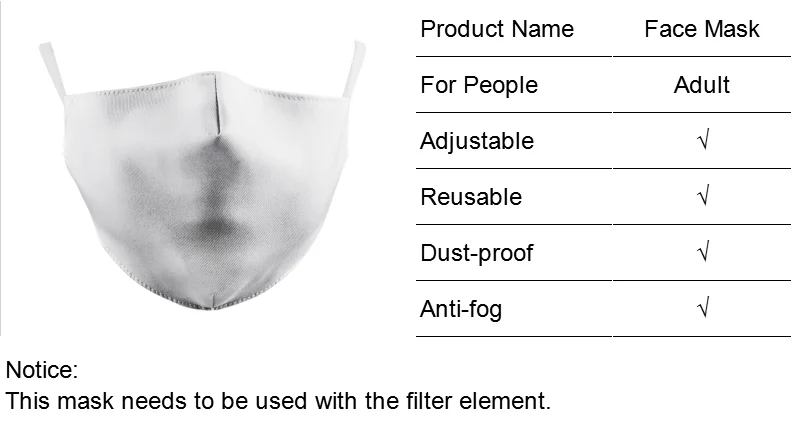 Советы1. Если фильтр загрязнен посторонними предметами, масляными пятнами и т. д., пожалуйста, замените его вовремя.2. Если у вас проблемы с дыханием, не рекомендуется использовать маску.