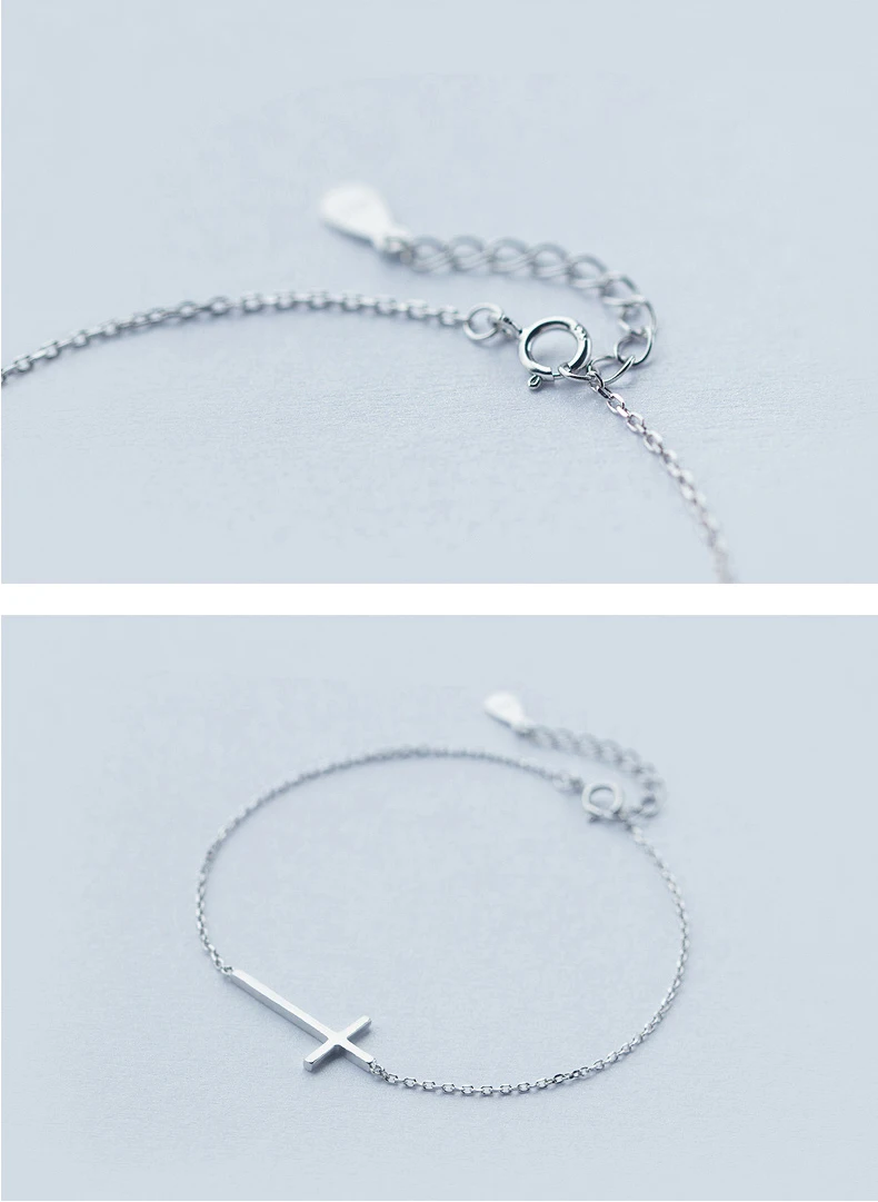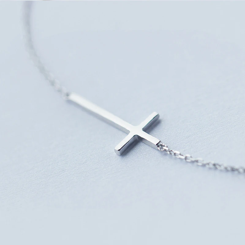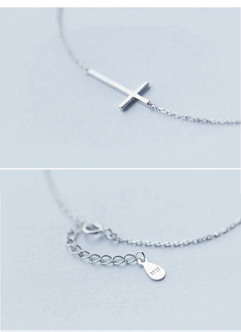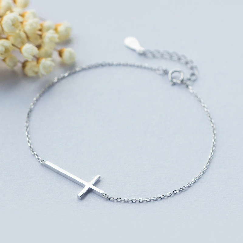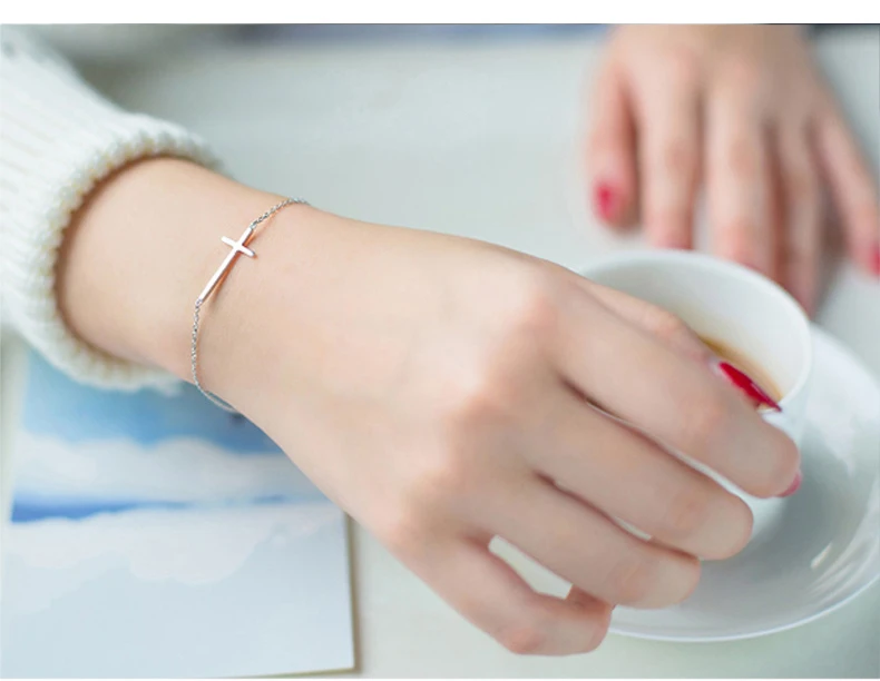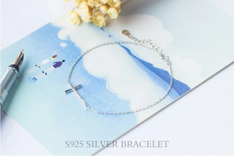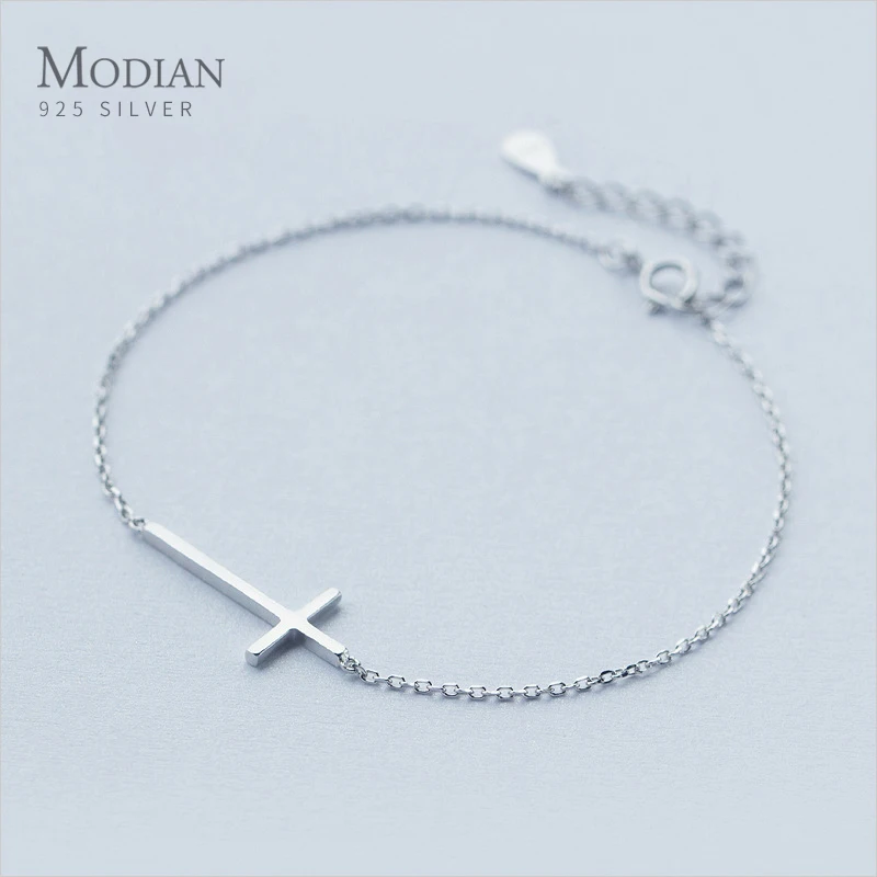Женский браслет-цепочка Modian, браслет из настоящего серебра 100% пробы с простым крестом, ювелирное изделие из стерлингового серебра 925 пробы, подарок на день Святого Валентина