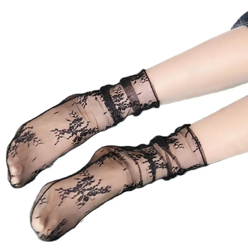 Японские сетчатые носки с ворсом элегантные женские летние тонкие кружевные Дышащие носки феи с цветами женские прозрачные носки Длинные Носки