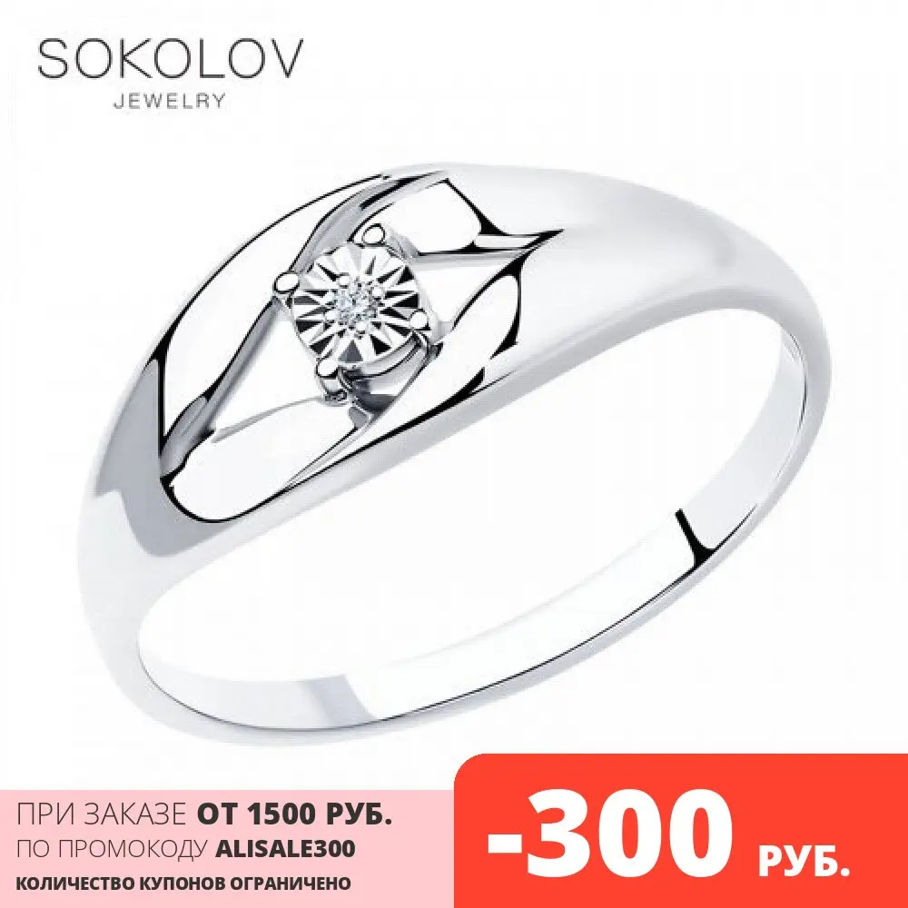 Кольцо SOKOLOV из серебра с бриллиантом, Серебро, 925, Женское, Ори...
