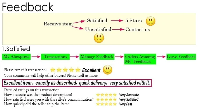 Доставка: все пакеты отправляются с действительно отслеживаемым номером. Поскольку посылка должна быть отправлена на таможенную службу, необходимо about2-6 дней. Если более пяти дней не обновляется информация о треке. Немедленно свяжитесь с нами. Мы решим этот вопрос как можно скорее. После того, как вы получите посылка, все еще есть какие-либо вопросы, вы также можете оставить сообщение в США