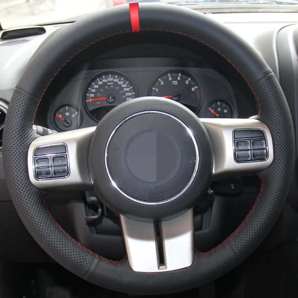 Черный чехол рулевого колеса автомобиля Дышащие красный маркер для Jeep Compass Grand Cherokee Wrangler Patriot 2012 2013 2014