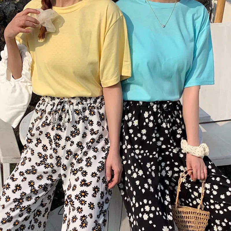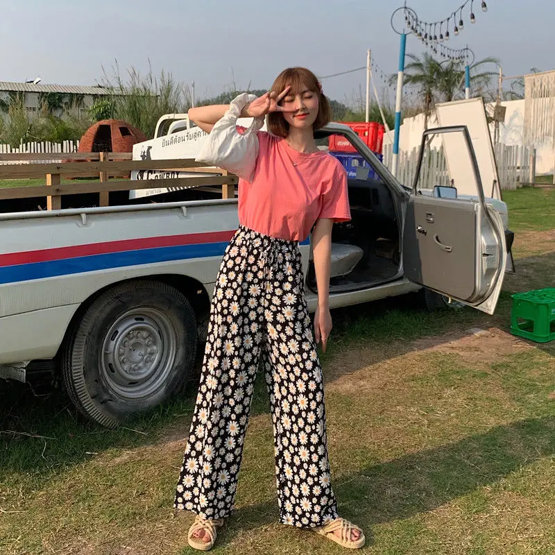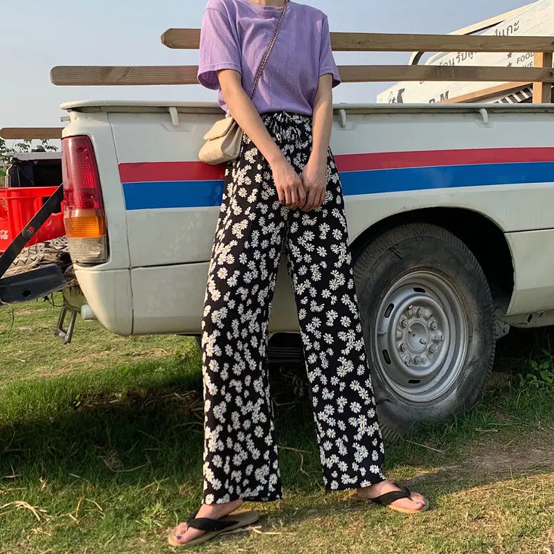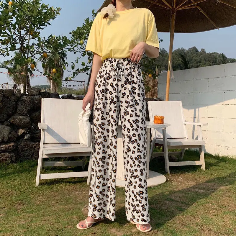 Брюки женские с цветочным принтом, винтажные праздничные штаны в стиле бохо, эластичные широкие брюки с завышенной талией, повседневные размера плюс, на лето