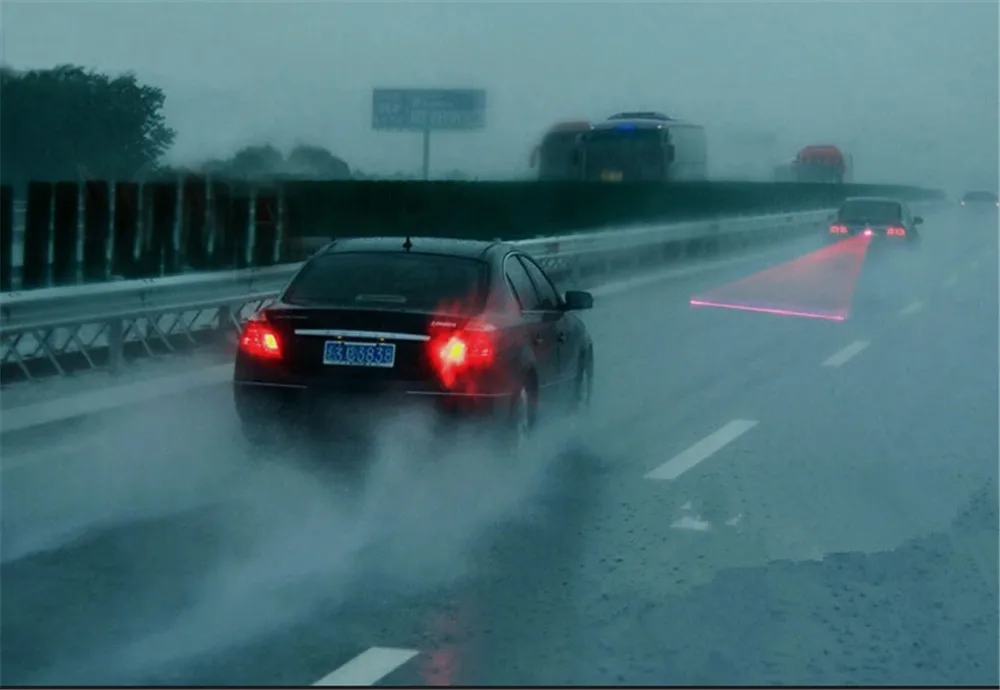 Новейший Разработанный лазерный противотуманный светильник-это установка красного лазерного передатчика в задней части транспортного средства для проецирования лазерного луча через воздух на землю в дождливую и туманную погоду. Легче найти, чем традиционный противотуманный светильник, и проникающая сила его сильнее. Это может напомнить позади транспортного средства, чтобы поддерживать безопасное расстояние. Лазерный луч снимается вниз с определенным углом наклона, чтобы гарантировать отсутствие прямого воздействия на глаза. Откройте светильник в солнечную погоду, только чтобы увидеть красную линию, проецируемую на земле, не нужно беспокоиться о том, что она защитит номерной знак транспортного средства.