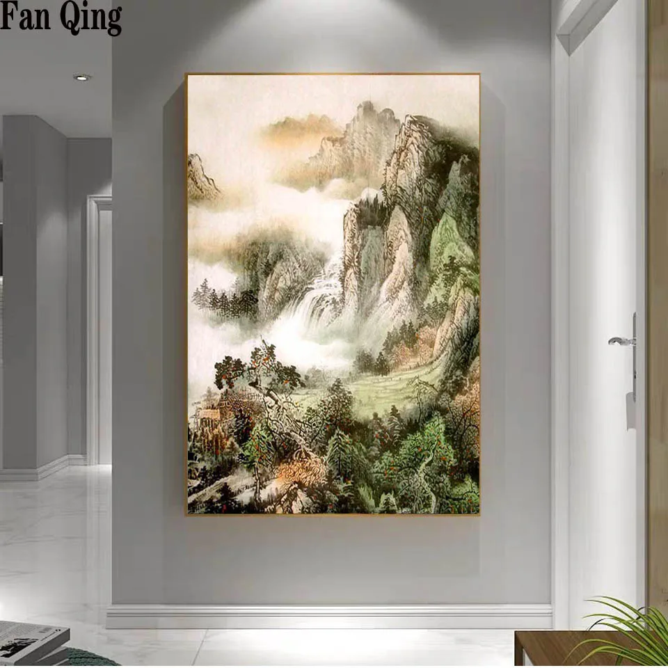 Горный и речной полный дрель квадратная/круглая Алмазная вышивка китайский пейзаж картины 5D DIY Алмазная Живопись Вышивка крестом