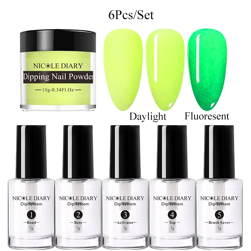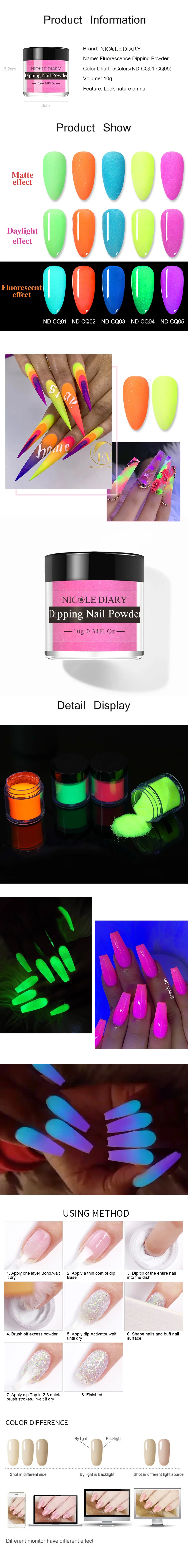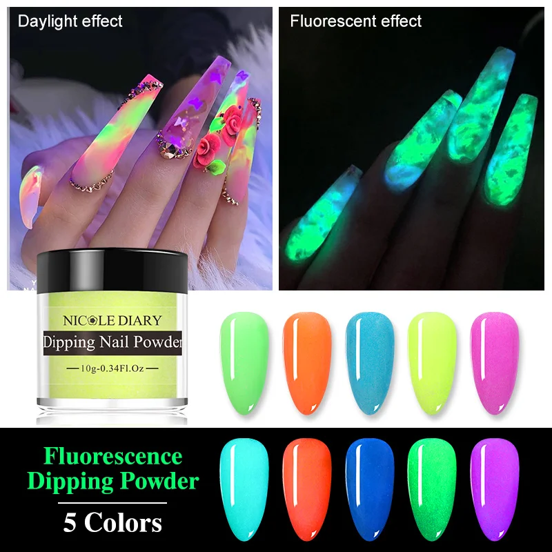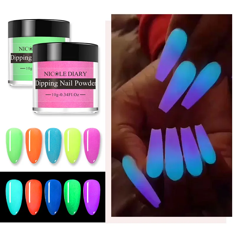 Флуоресцентная пудра NICOLE DIARY для ногтей, блестящий светящийся в темноте неоновый пигмент, пыль, хром, украшение для дизайна ногтей, 6 шт.компл.