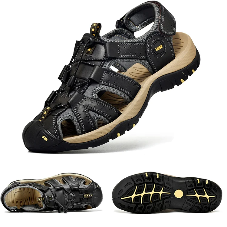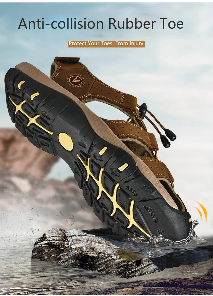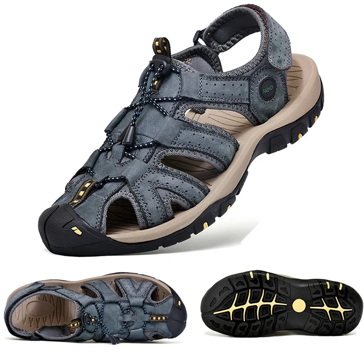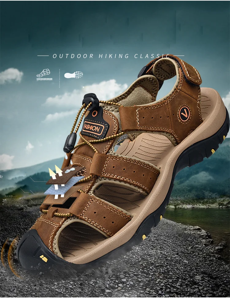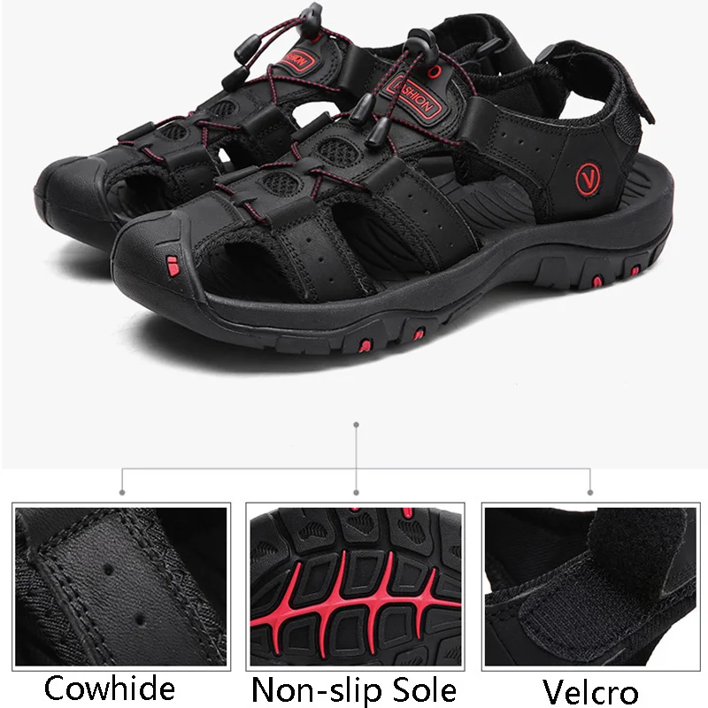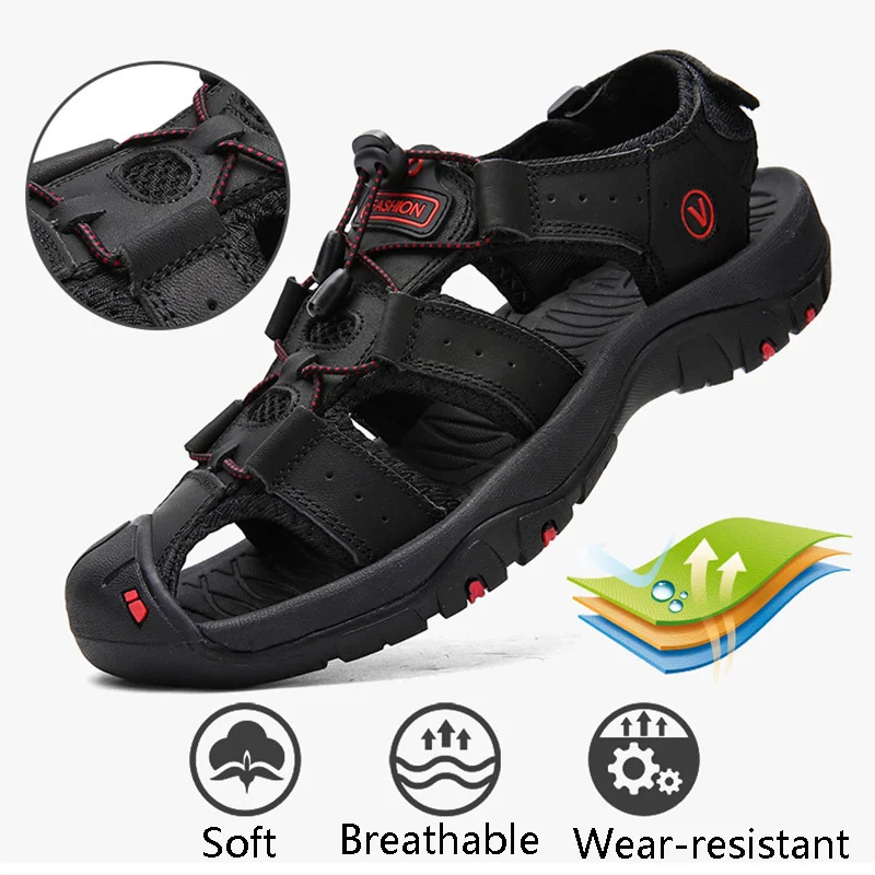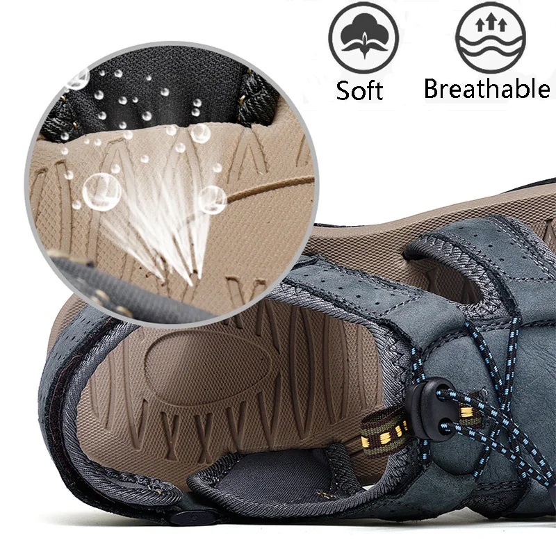 Сандалии мужские из натуральной кожи, Классические босоножки, Уличная обувь, пляжные водные кроссовки, большие размеры, лето