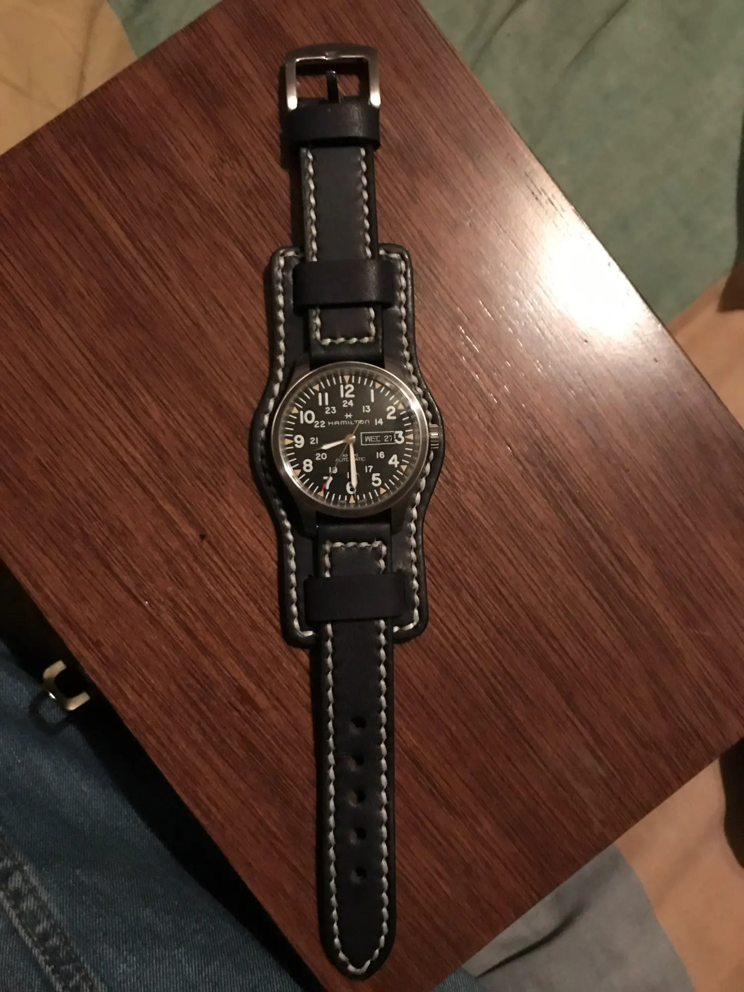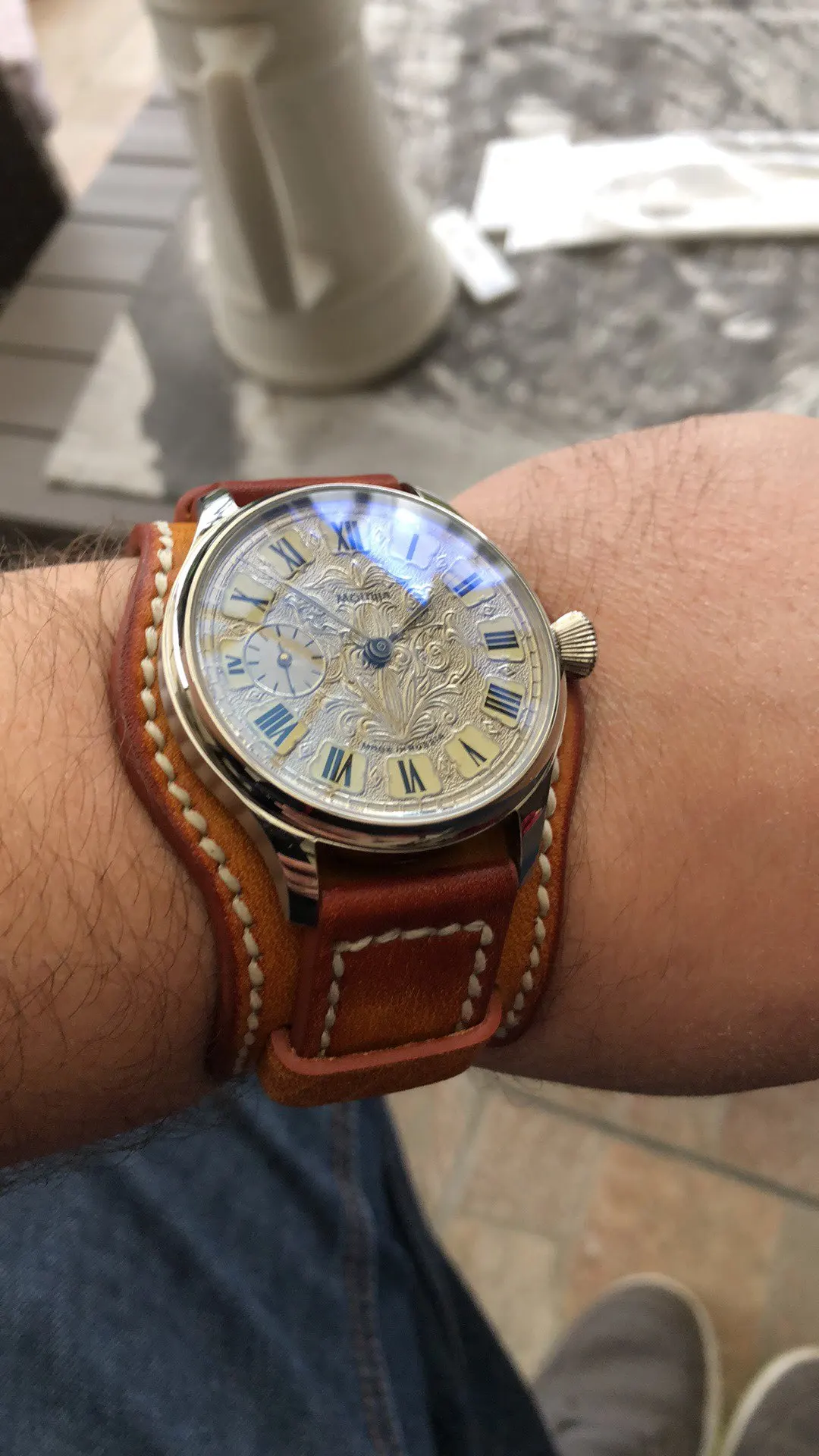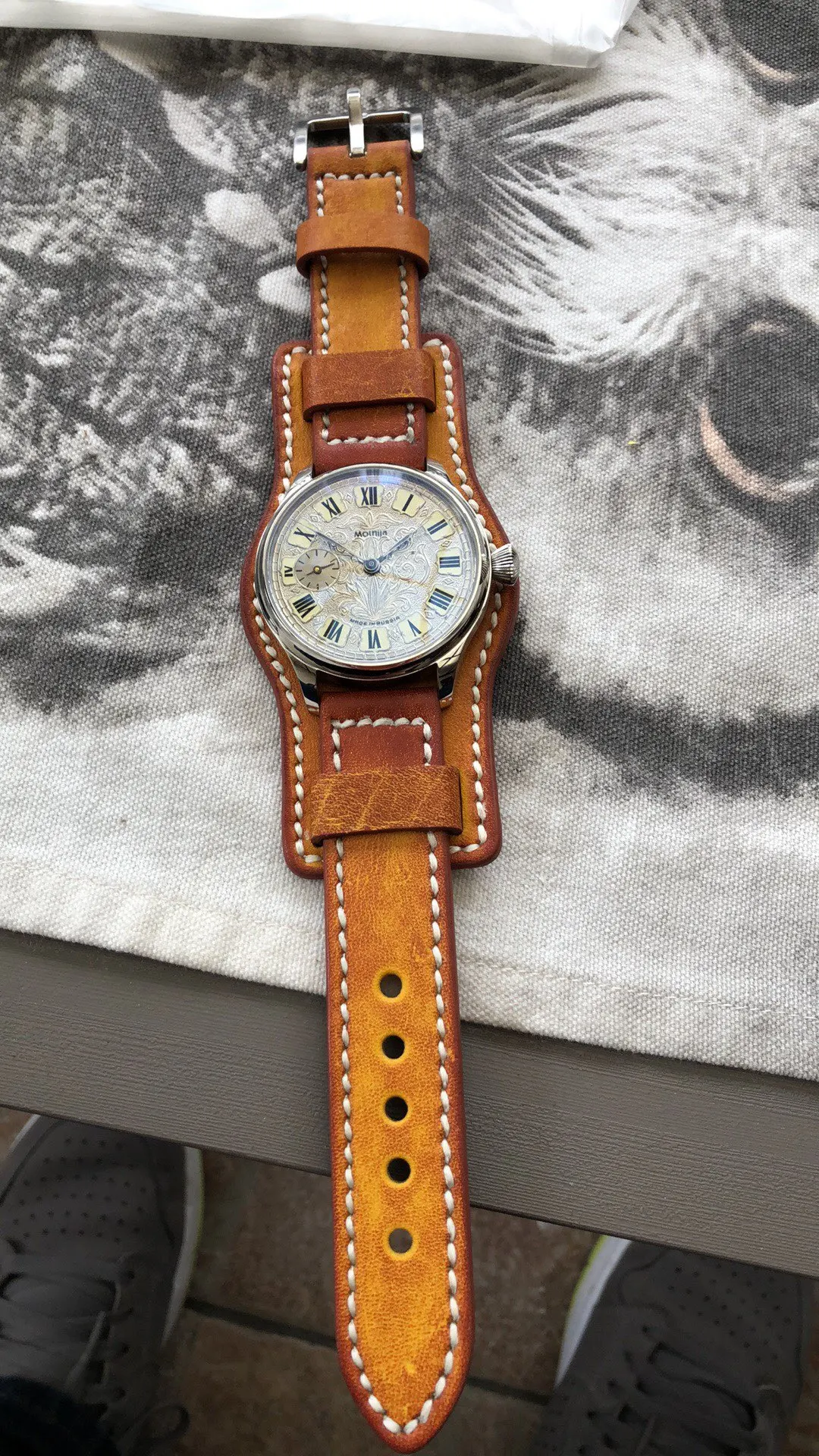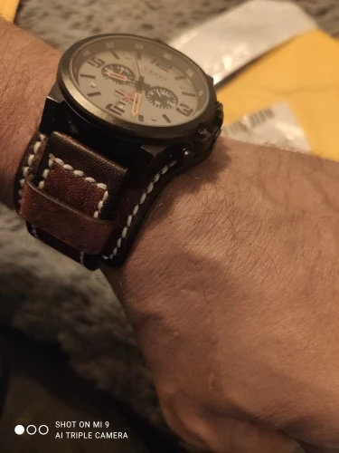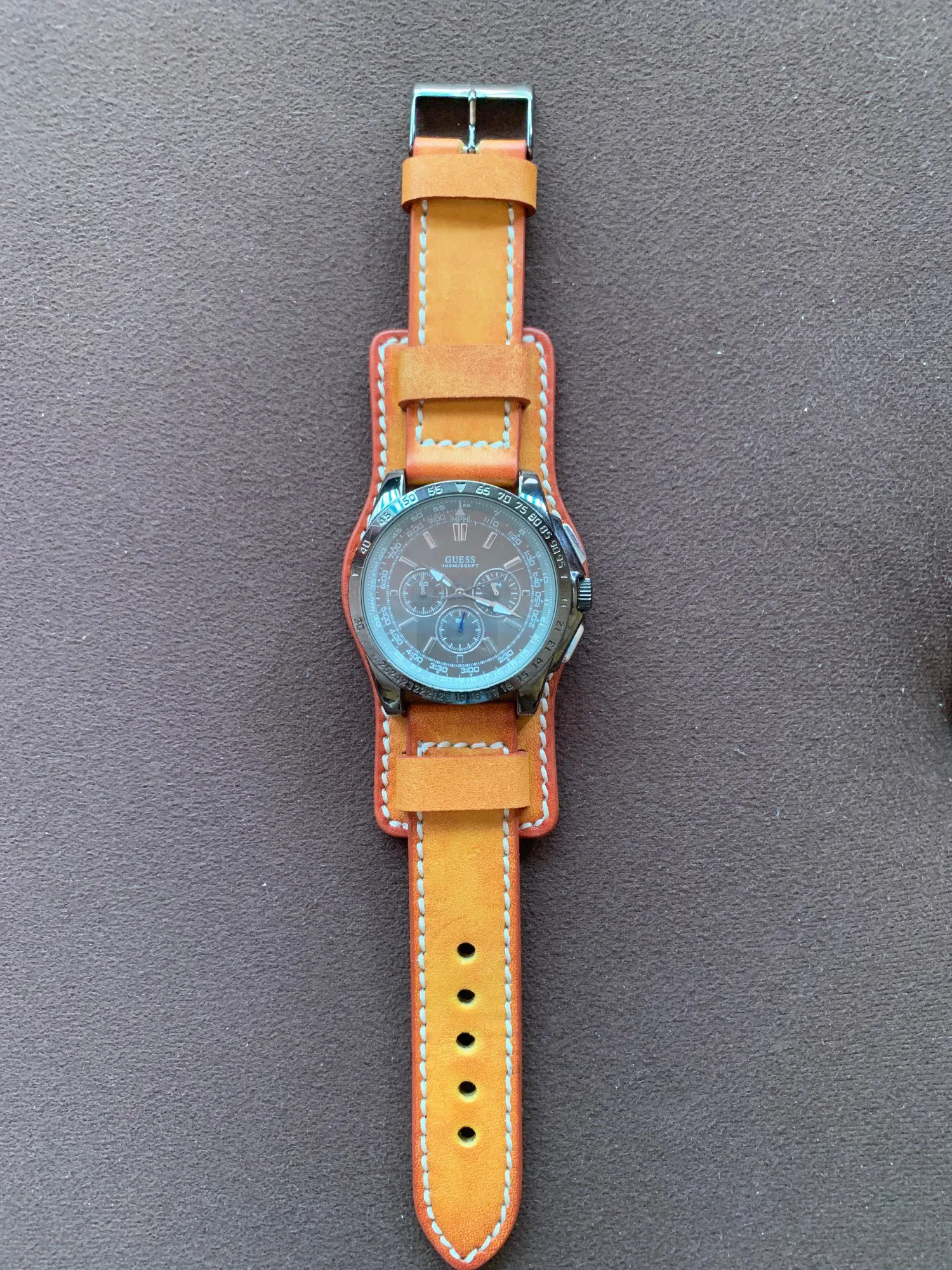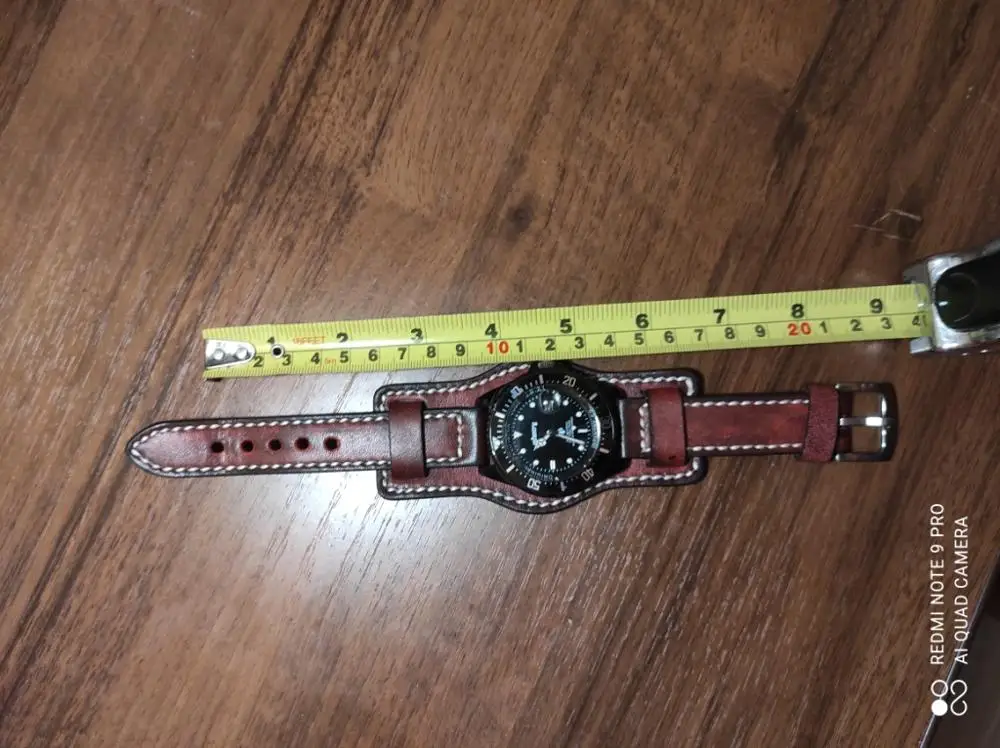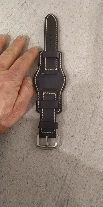 Как на фотографиях. Он выглядит надежным и швы придают ему очень холодный вид. Мне нужен браслет для часов с большим циферблатом, и это именно то, что мне нужно.