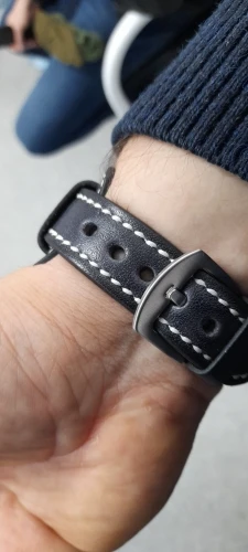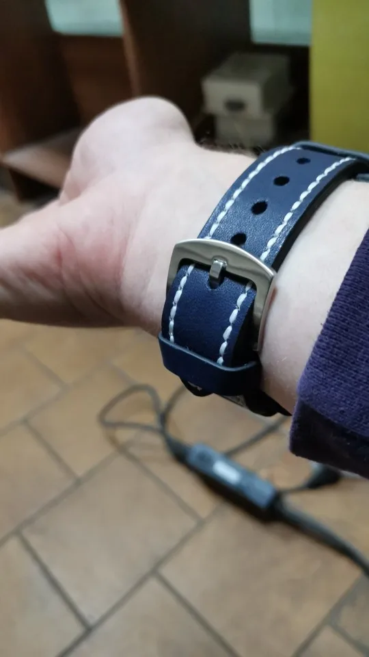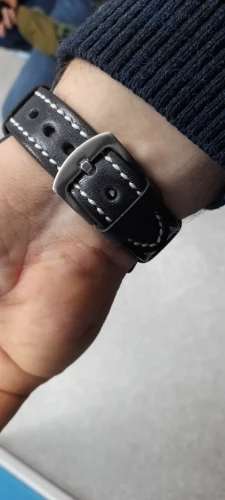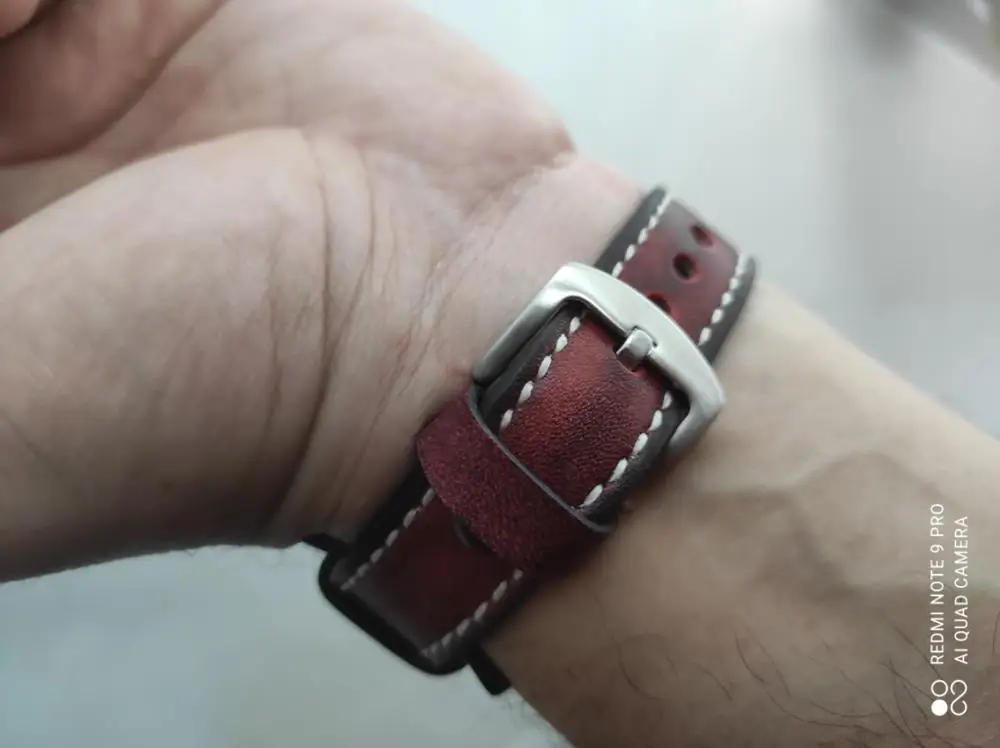 Кожа (или нет?) имеет сильный запах, торцы заделаны как на ремешка из PU, ремешок пошит качественно, но на запястье 19 см. коротковат - застегивается на последнее отверстие.