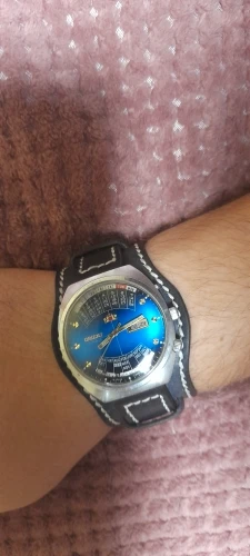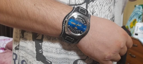 Ремешок маленький на большую руку, хотя расчитан на большие часы. Еле застегнул на последнюю дырку!!! Пережимает руку. С большим запястье не советую!!!