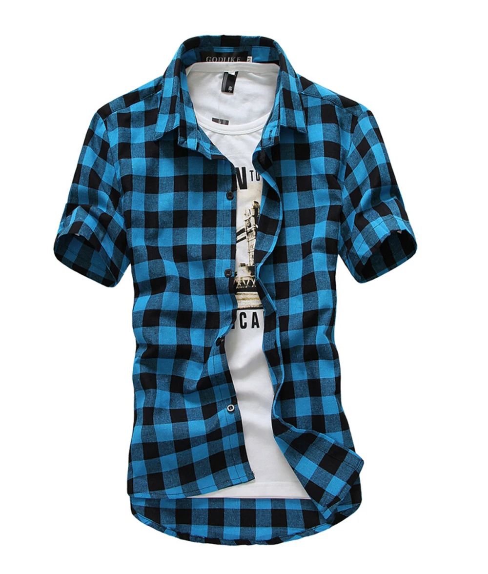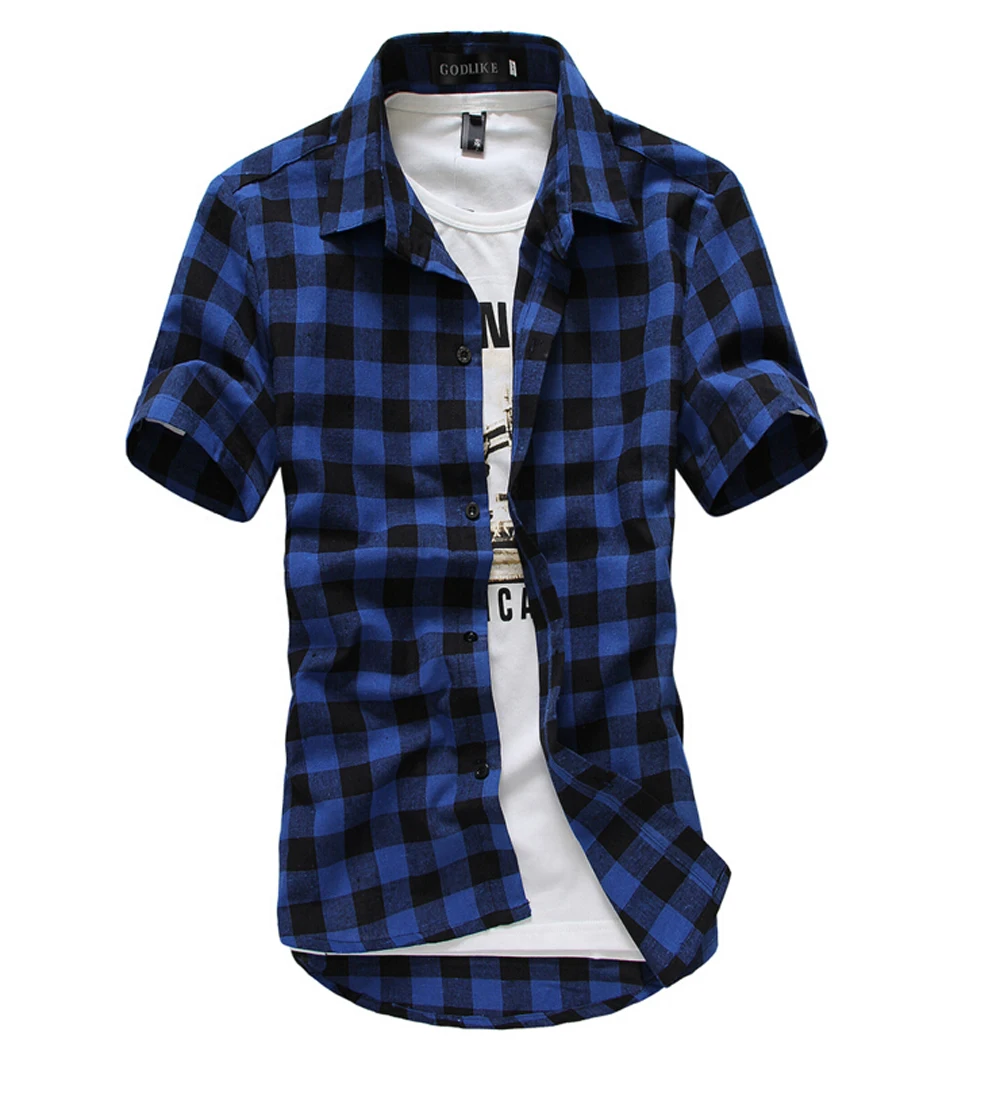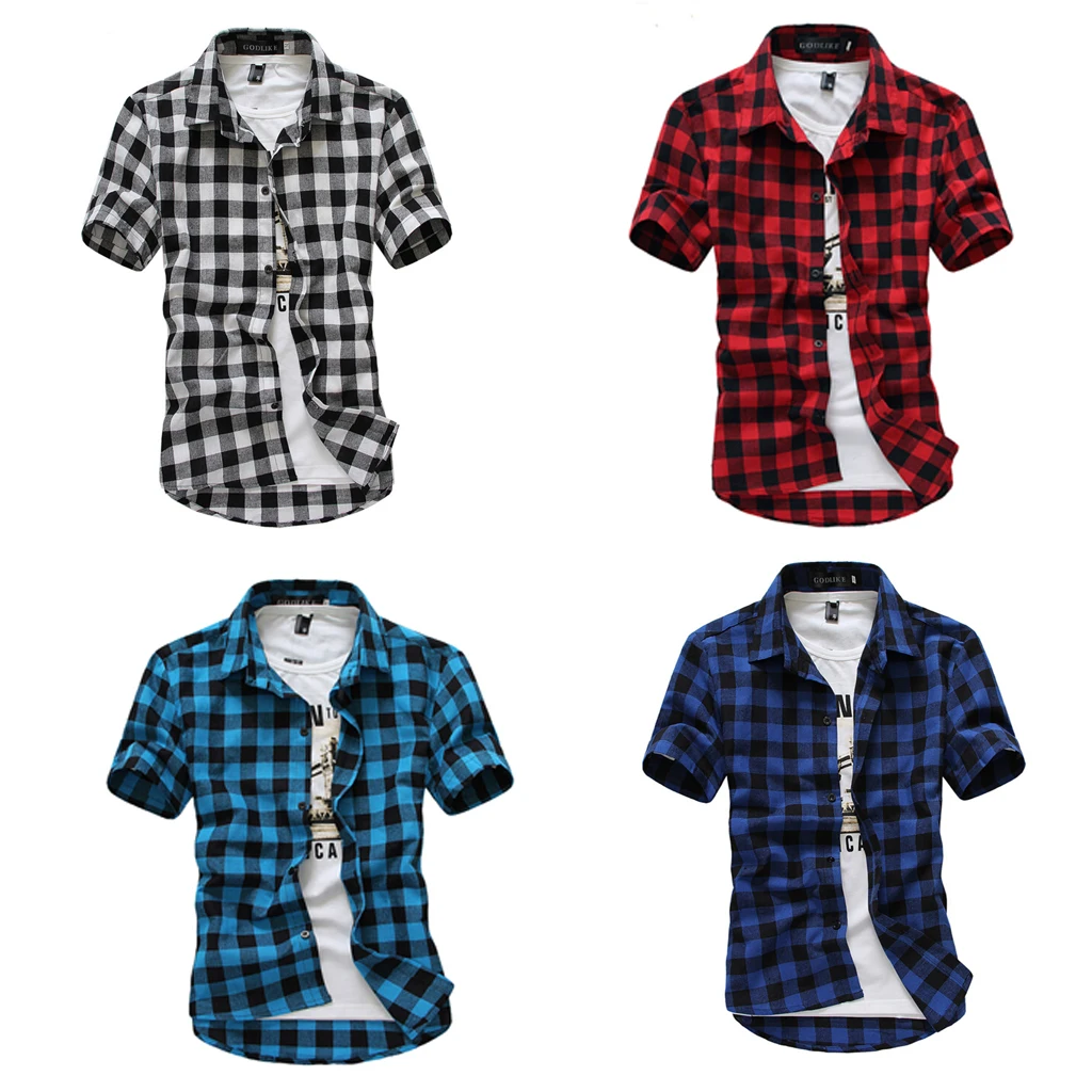 Модная Мужская Летняя Повседневная рубашка, мужские клетчатые рубашки с коротким рукавом, топы